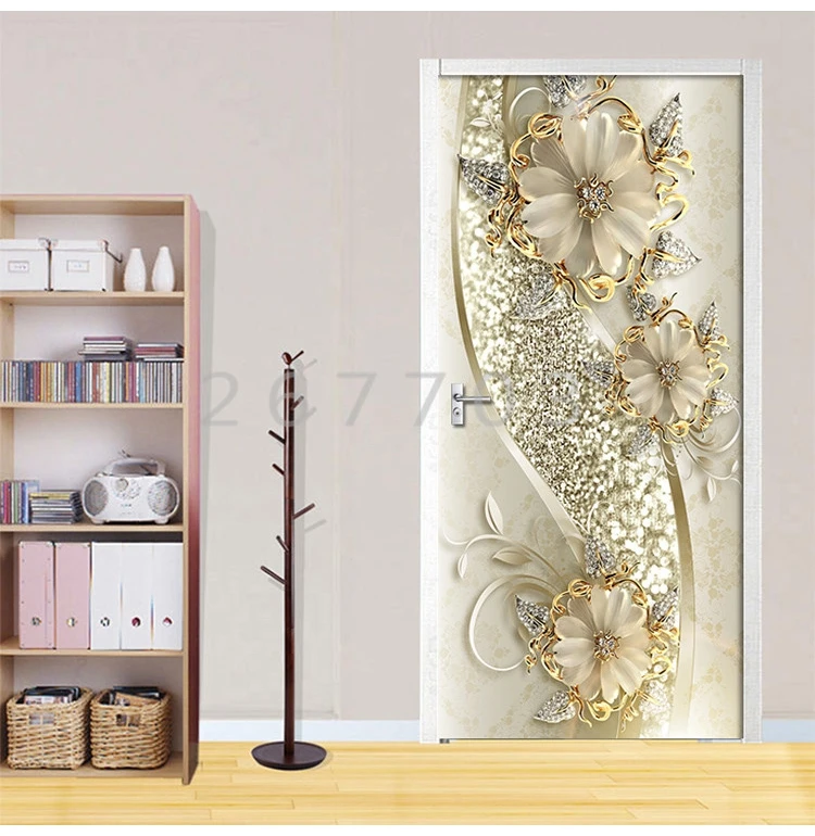 3D наклейка на дверь золотые тисненые цветы Настенная роспись художественные обои Плакат Наклейка на дверь ПВХ самоклеящаяся Съемная наклейка на дверь дома