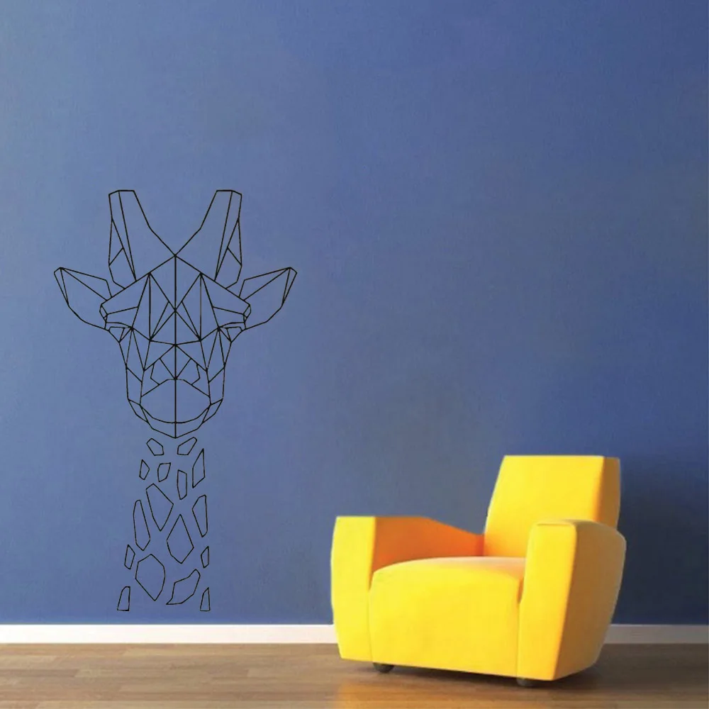 Большие виниловые настенные наклейки с жирафом для девочек-подростков, Геометрические линии, наклейки на стену в виде животных, художественные росписи для гостиной и спальни, C957