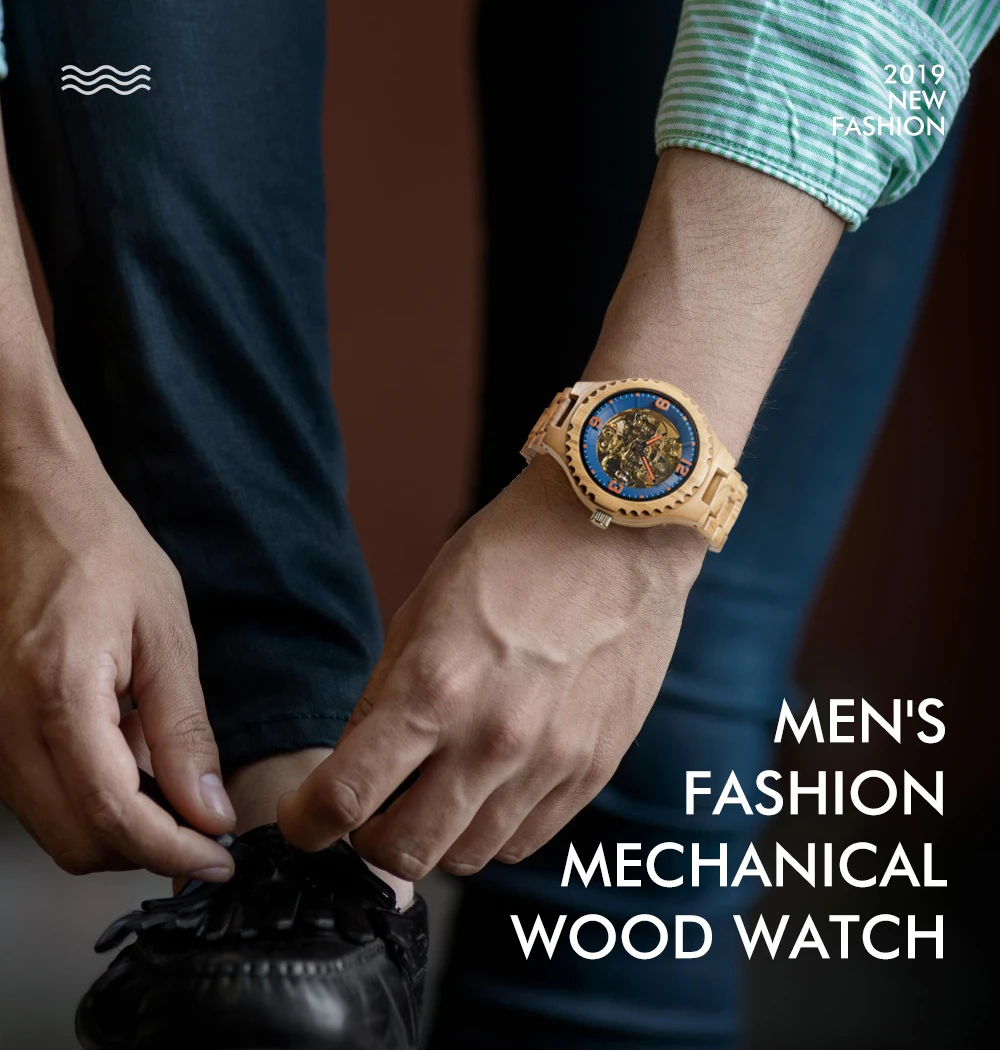 Часы мужские деревянные с автоподзаводом, водонепроницаемые, в подарочной коробке