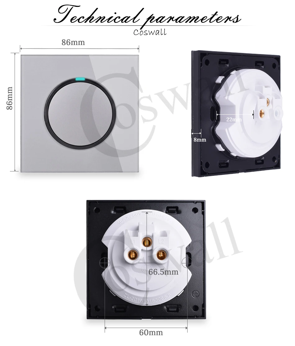 Coswall 1 Gang 2 Way случайный нажмите кнопку ВКЛВЫКЛ лестницы настенный светильник переключатель Синий Подсветка светильник проходят через выключатель переключается Стекло Панель серый