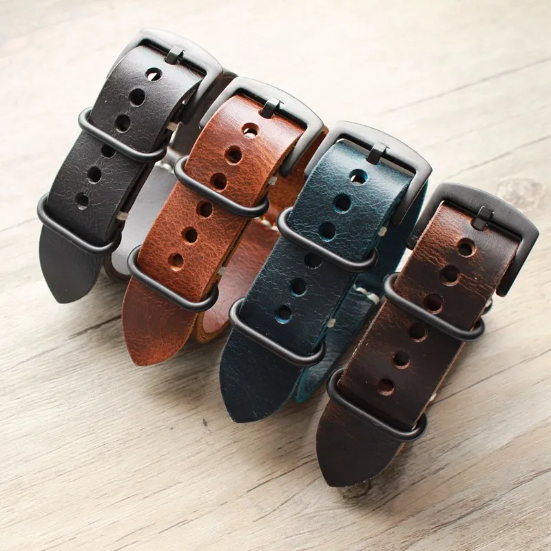Ремешок из натуральной кожи для наручных часов, винтажный браслет Crazy Horse в стиле НАТО, синий черный коричневый, 20 мм 22 мм 24 мм