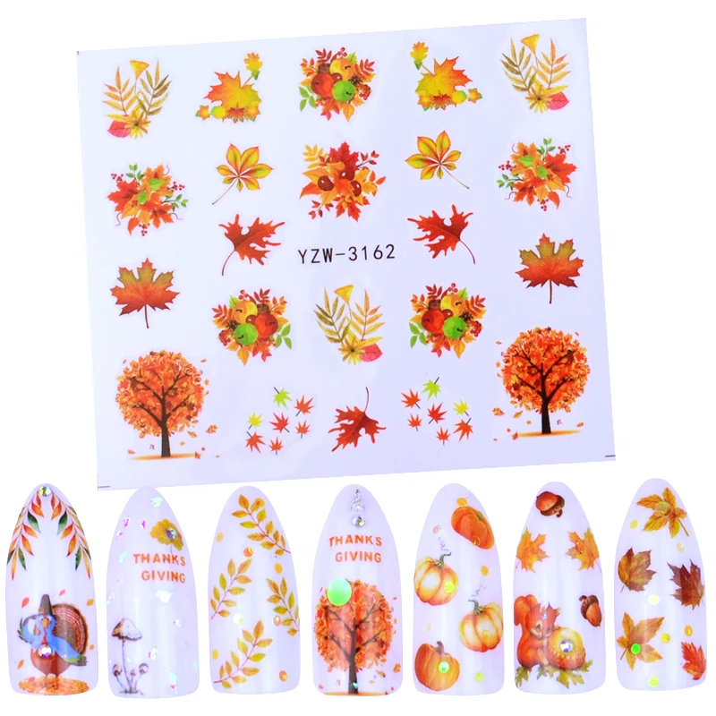 1 лист наклейки для ногтей кленовый лист Тыква водная наклейка желтые листья осенний узор наклейка украшение для ногтей водяные татуировки