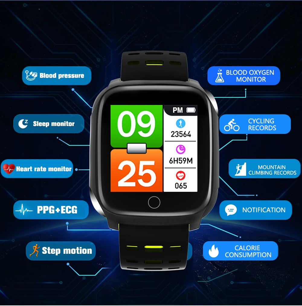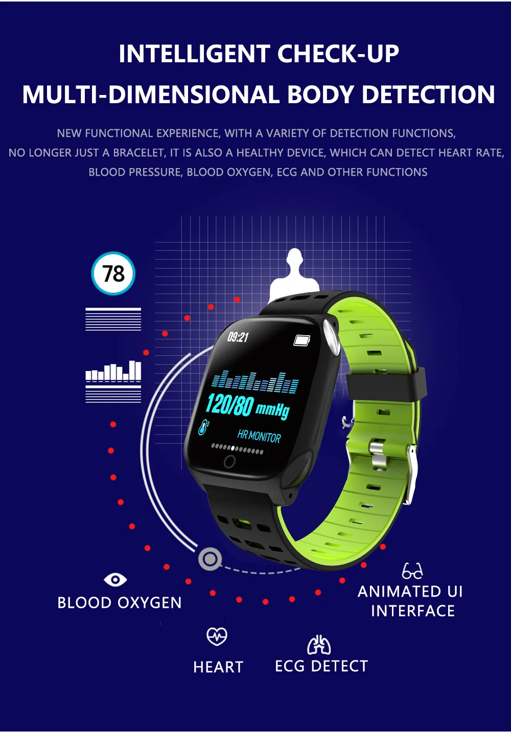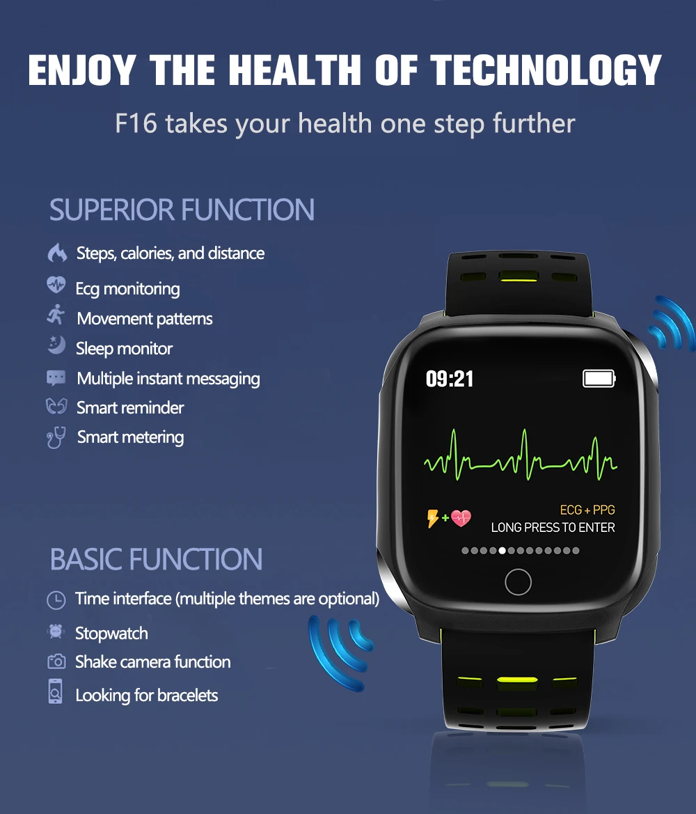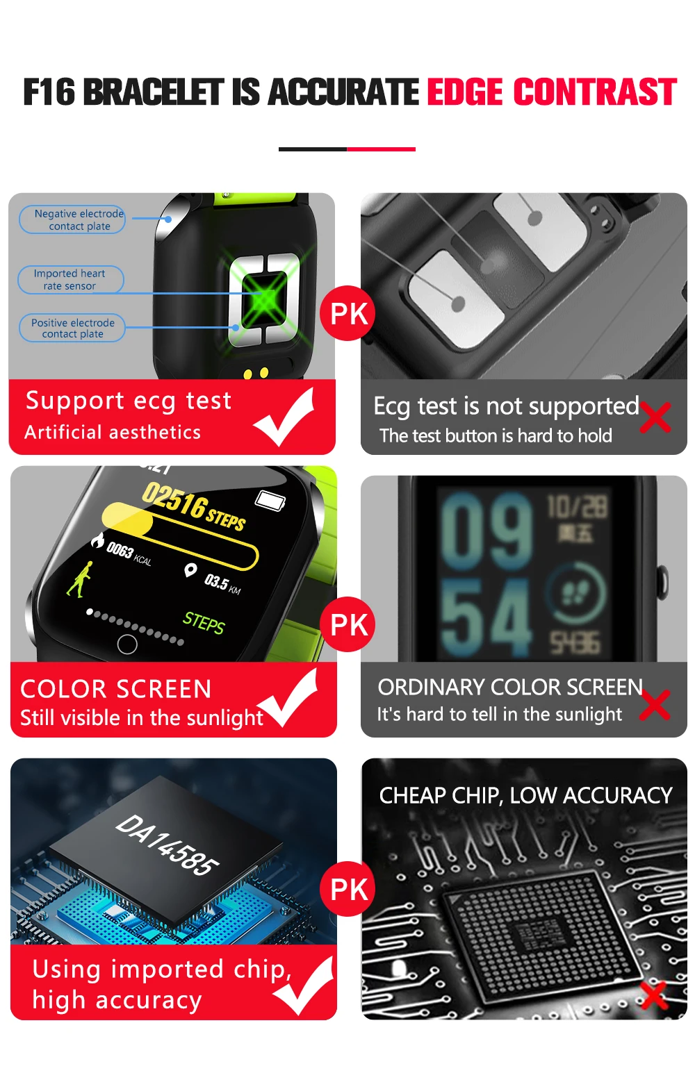 Смарт-браслет 696 F16, ЭКГ + ППГ, водонепроницаемый, с шагомером, будильником, пульсометром, кровяным давлением