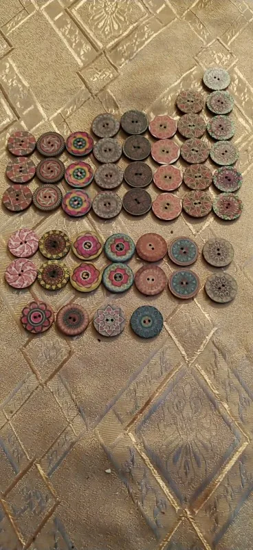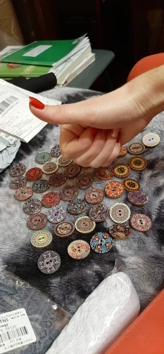 Доставка быстрая, пуговицы симпотичные, яркие, некоторые пуговицы с одинаковым рисунком, но разные по высоте, вместо заявленных 50 штук 46