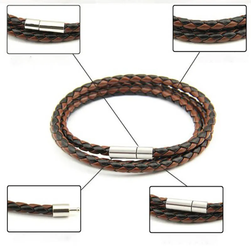 Новинка 100%, модный плетеный кожаный браслет из натуральной кожи, мужские и женские браслеты с магнитными застежками, очаровательные браслеты, ювелирные изделия для мужчин и женщин