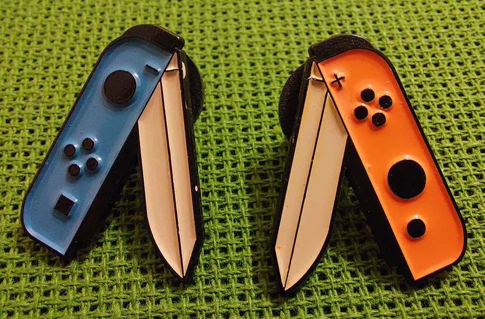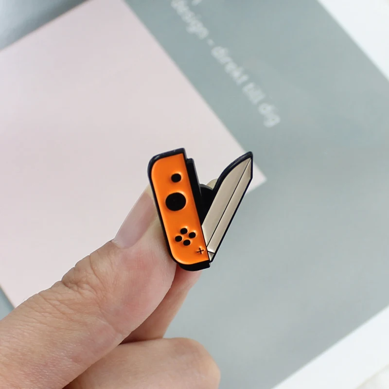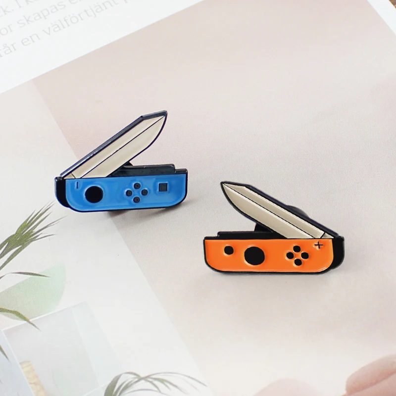 Эмалированные булавки, оранжевый синий нож, геймпад, игровая ручка, броши, переключатель, игровая Ручка для Nintendo для женщин, значки, ювелирные изделия, бижутерия
