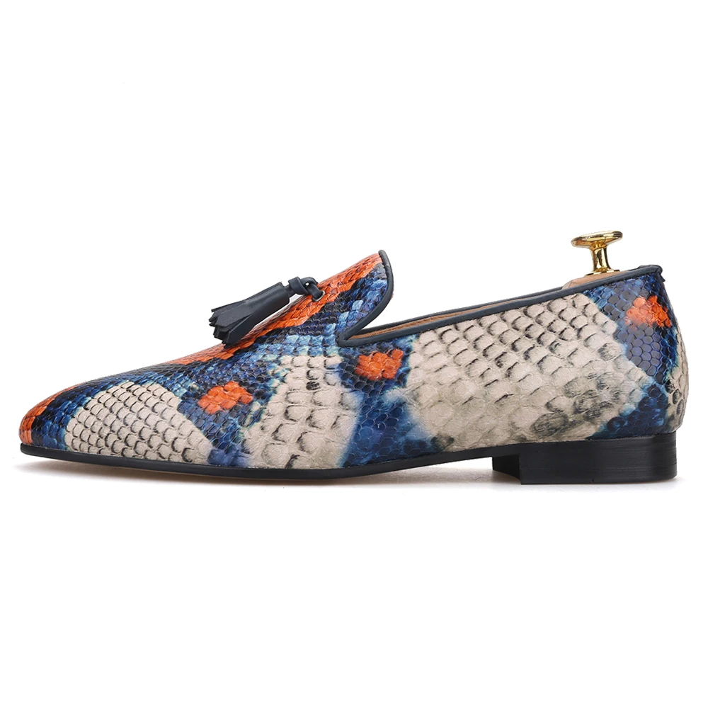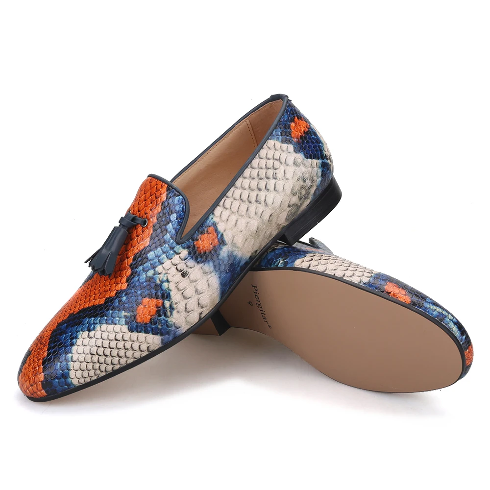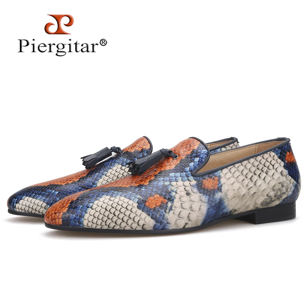 Мужские мокасины Piergitar, повседневные туфли из коровьей кожи со змеиным узором, с кисточками, ручной работы, 2019