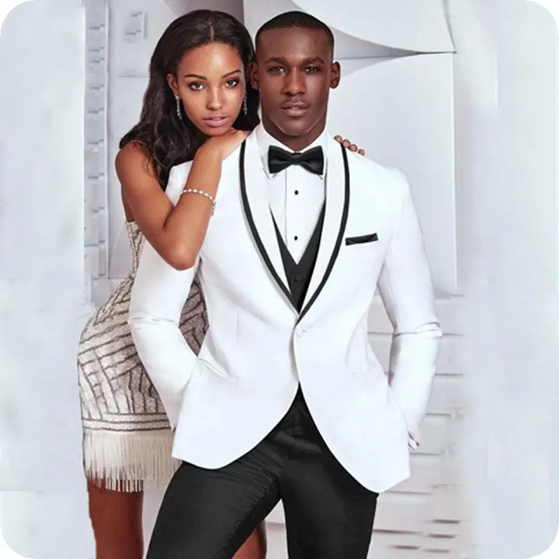 Мужские костюмы из 3 предметов, белый блейзер с черными брюками, де...