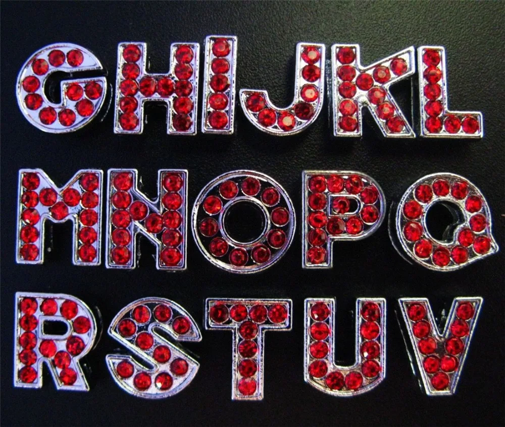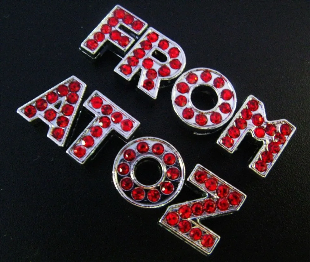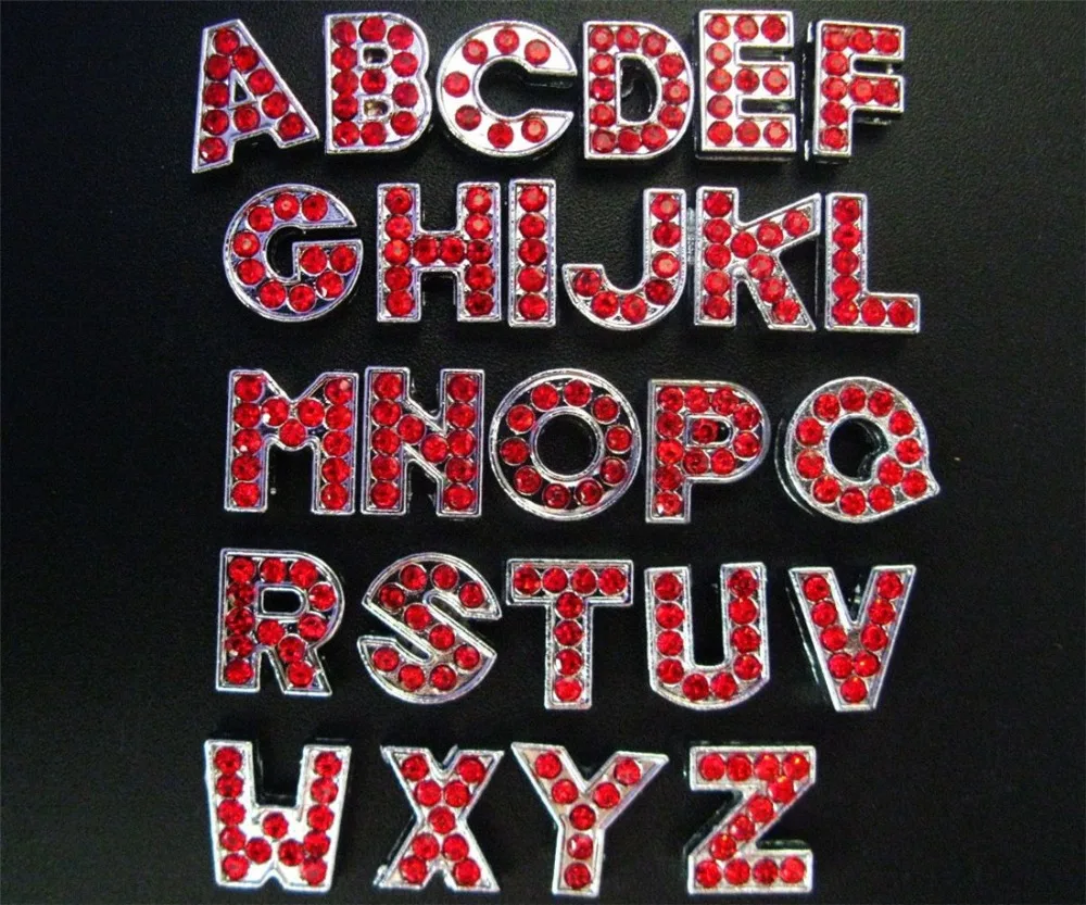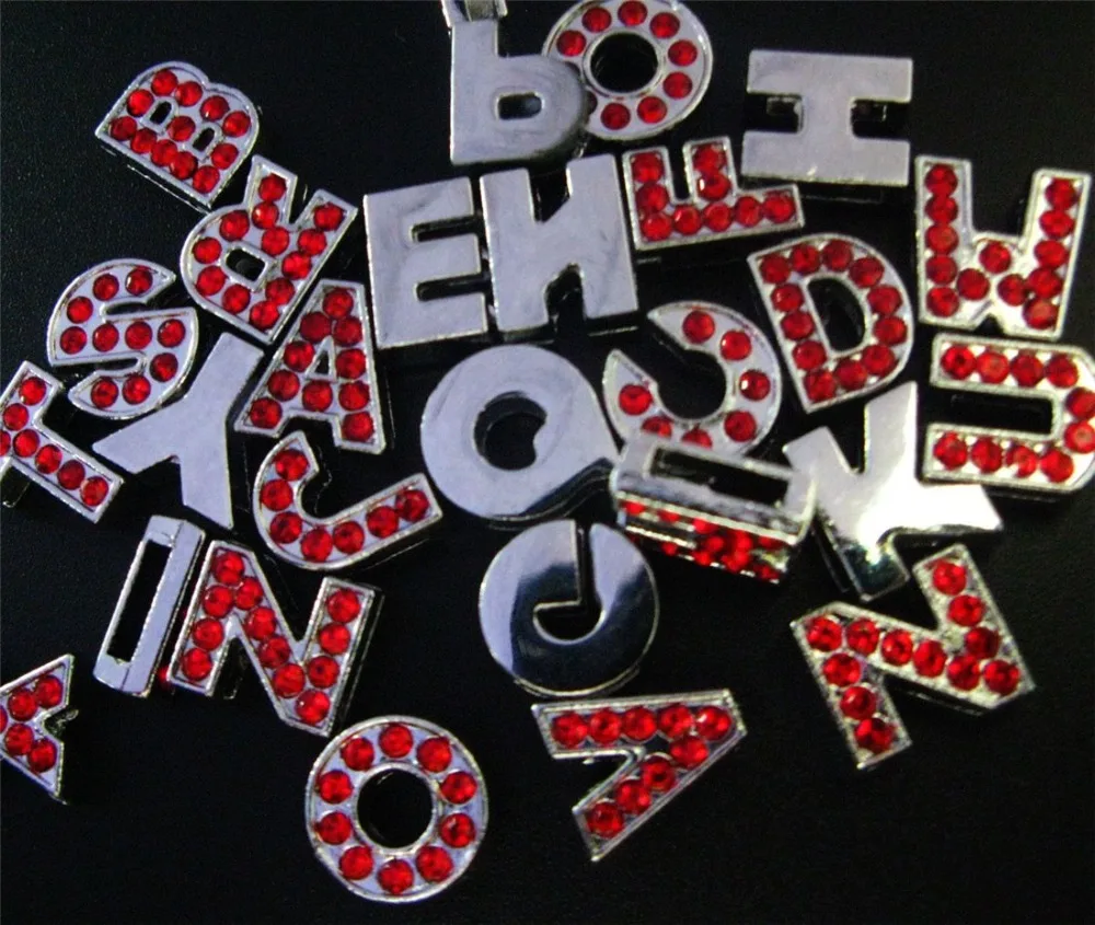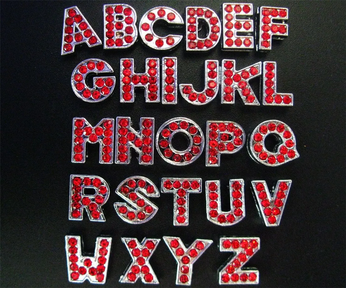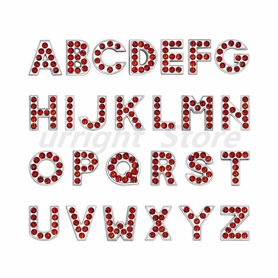 1 шт. A-Z красные стразы буквы английского алфавита Внутренний диаметр: 8 мм скользящие шармы в виде букв подходит для ошейника для домашних животных DIY брелок-браслет