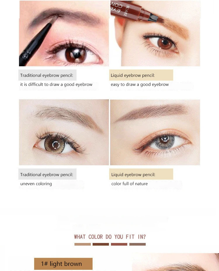 Дикие бровиОн кажется грязным, ноНа самом деле он был тщательно обработан"Грязный" Девушка естественное чувствоЖидкие Брови по сравнению с традиционными карандашами для бровейРучка больше подходит для рисования диких бровейЭтот жидкий карандаш для бровей имеет двуfurcated дизайн nib.Нарисуйте его как татуировкуОщущение, укоренение, оченьНатуральный и очень прочный!Этот карандаш для бровей на водной основе, и если на лице есть масло, легко блокировать отверстие для воды.Вода становится негладкой, поэтому она дольше прослужит на коже бровей.Это занимает много времени, если есть смазка и другие макияж, прикрепленные к голове разделенной щетки.Результат не гладкий, и он может быть восстановлен с помощью бумажного полотенца, чтобы отсосать щетку и очистить его.Жидкий карандаш для бровей легко формирует ваш темпераментУникальный 4-раздвоенный карандаш для бровей, чтобы создать различные формы бровям