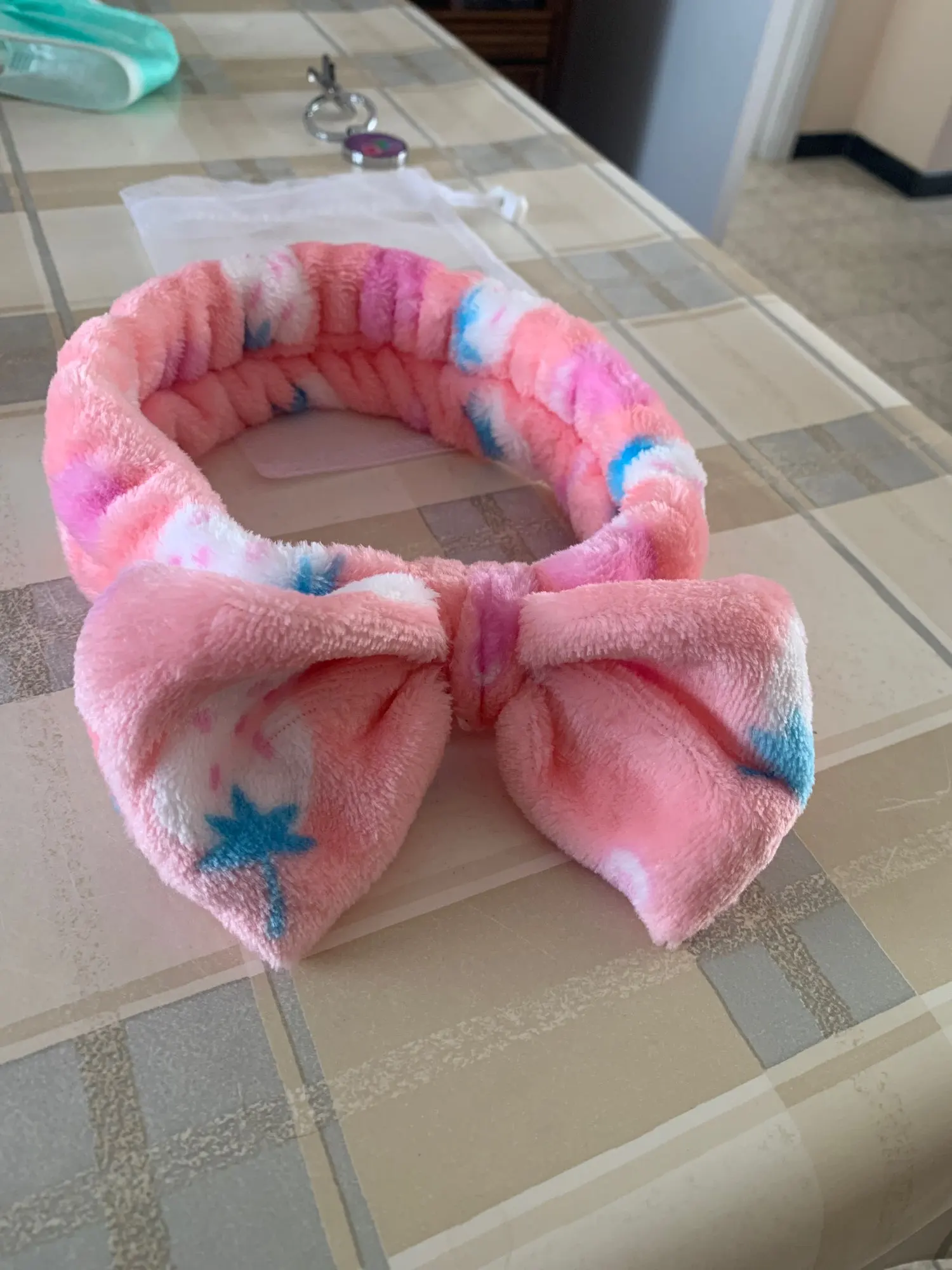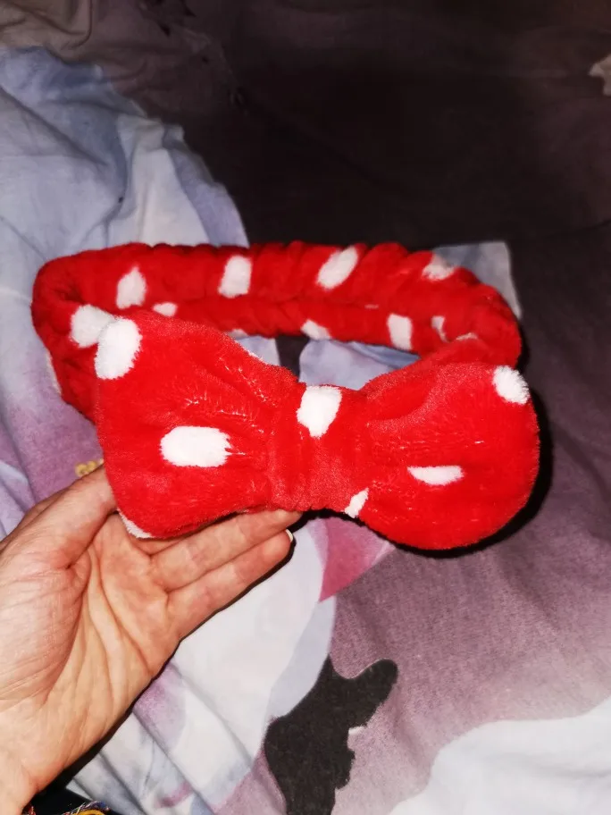 Качество отличное,очень мягкая тактильно)) Резинка хорошо держит,но при этом не сдавливает голову. По желанию можно убрать бантик,он вытаскивается. Понравился большой выбор расцветок,мне приглянулся принт "коровка". Рекомендую, очень классная!))