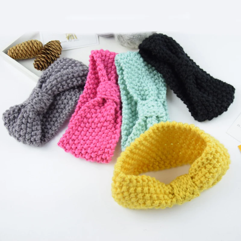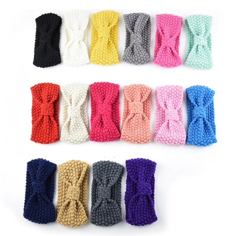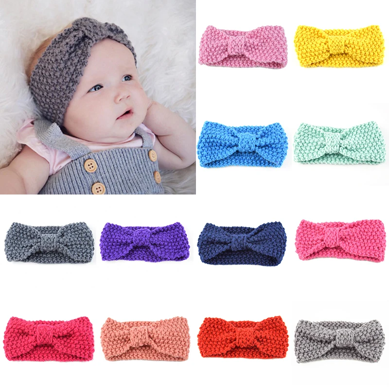 1 шт. вязаная для маленьких девочек вязаная повязка на голову с бантом модная резинка для волос Зимний Теплый головной убор