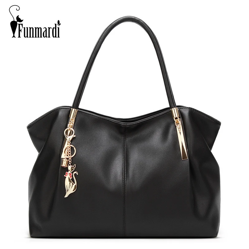 Женская сумка FUNMARDI с подвеской в виде кошки, вместительная, простая, WLHB1778A, сумка через плечо из искусственной кожи