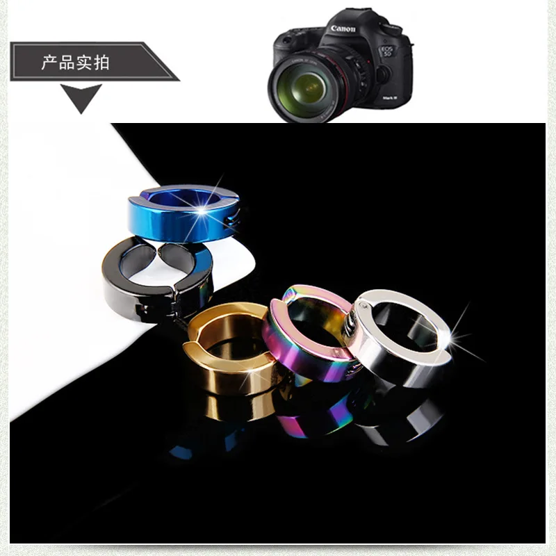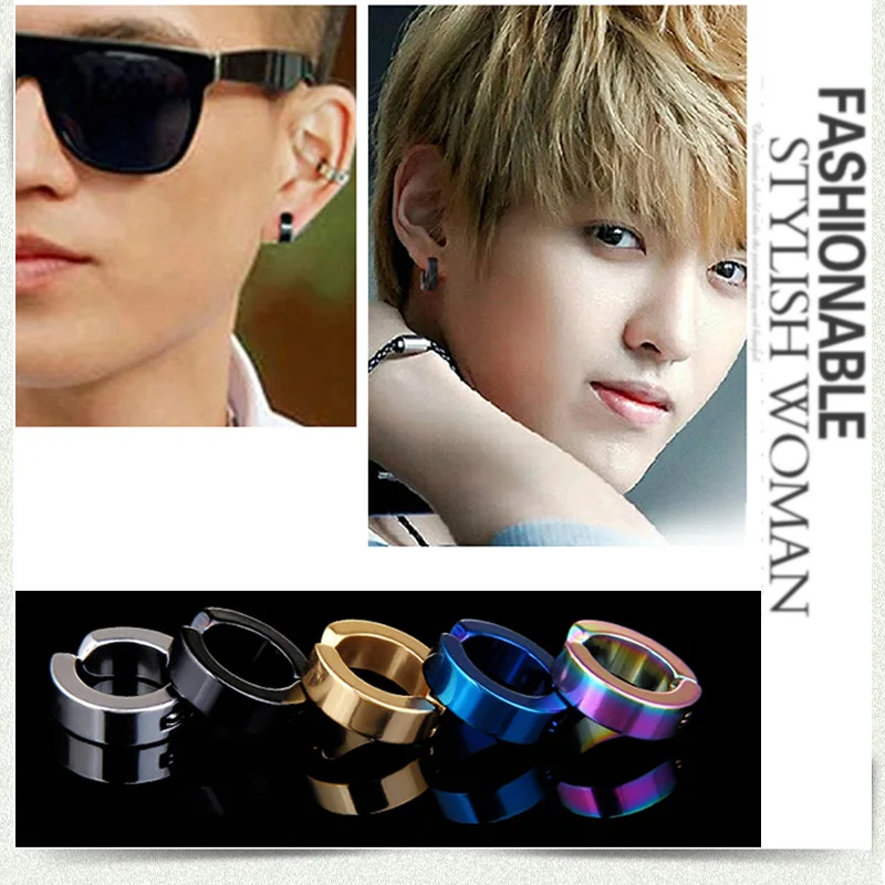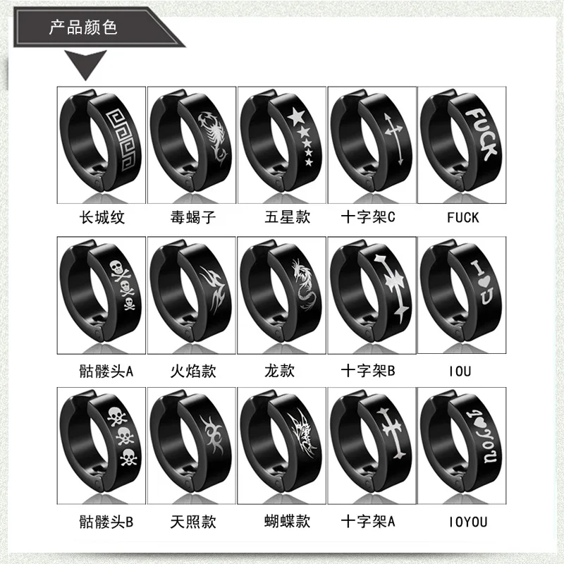 Серьги-клипсы в Корейском стиле мужские, антиаллергенные, черные, в стиле панк, серьги из титановой стали, без ушной петли