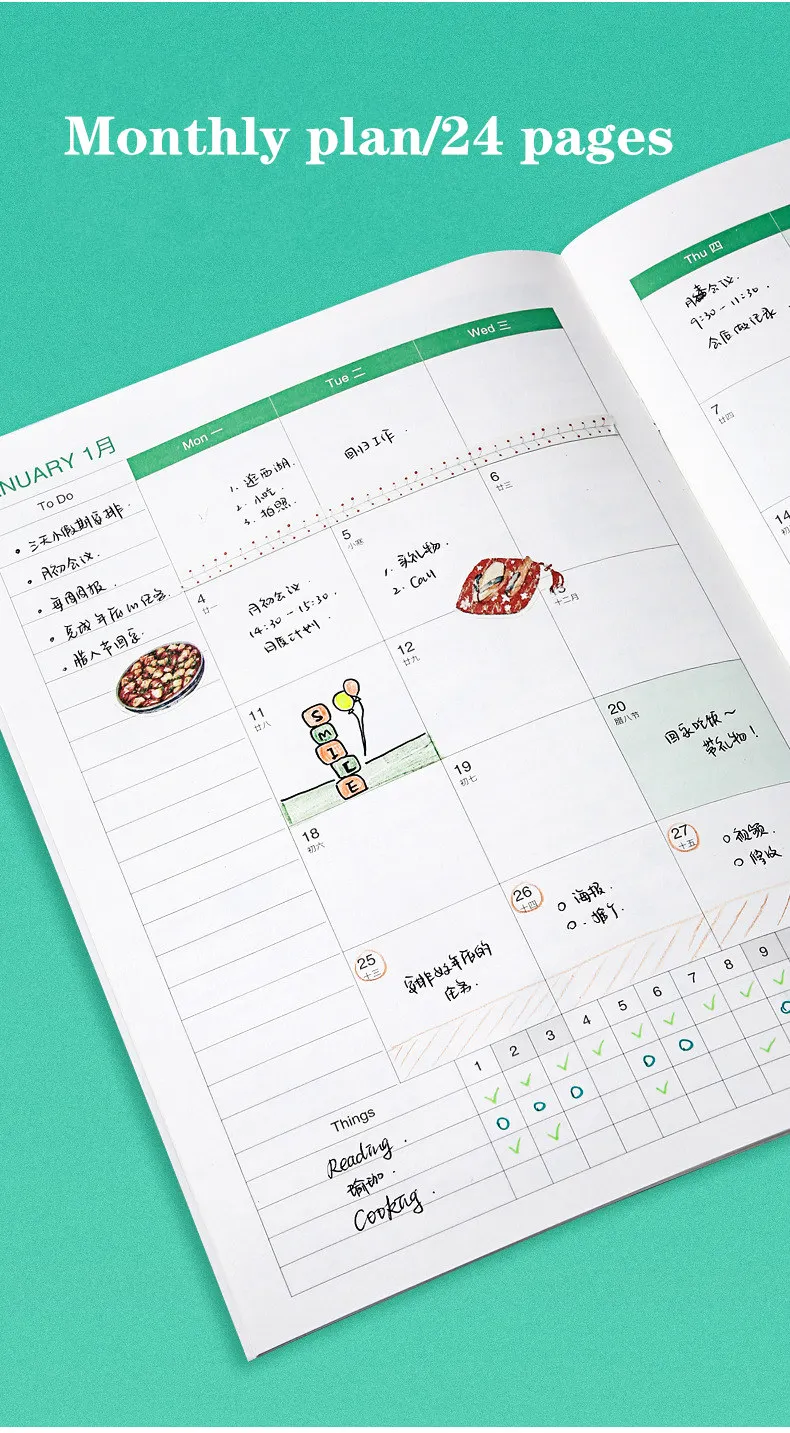 Ежедневник Kawaii A4, 2021 год, ежемесячный, ежедневник, блокнот, органайзер, 365 дней, расписание для школы, офиса, канцелярские принадлежности