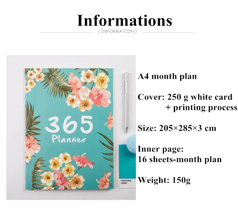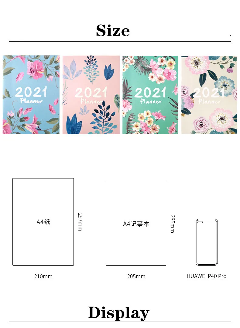 Цветок 2021 A4 ежемесячный планировщик, блокнот, органайзер, журнал...