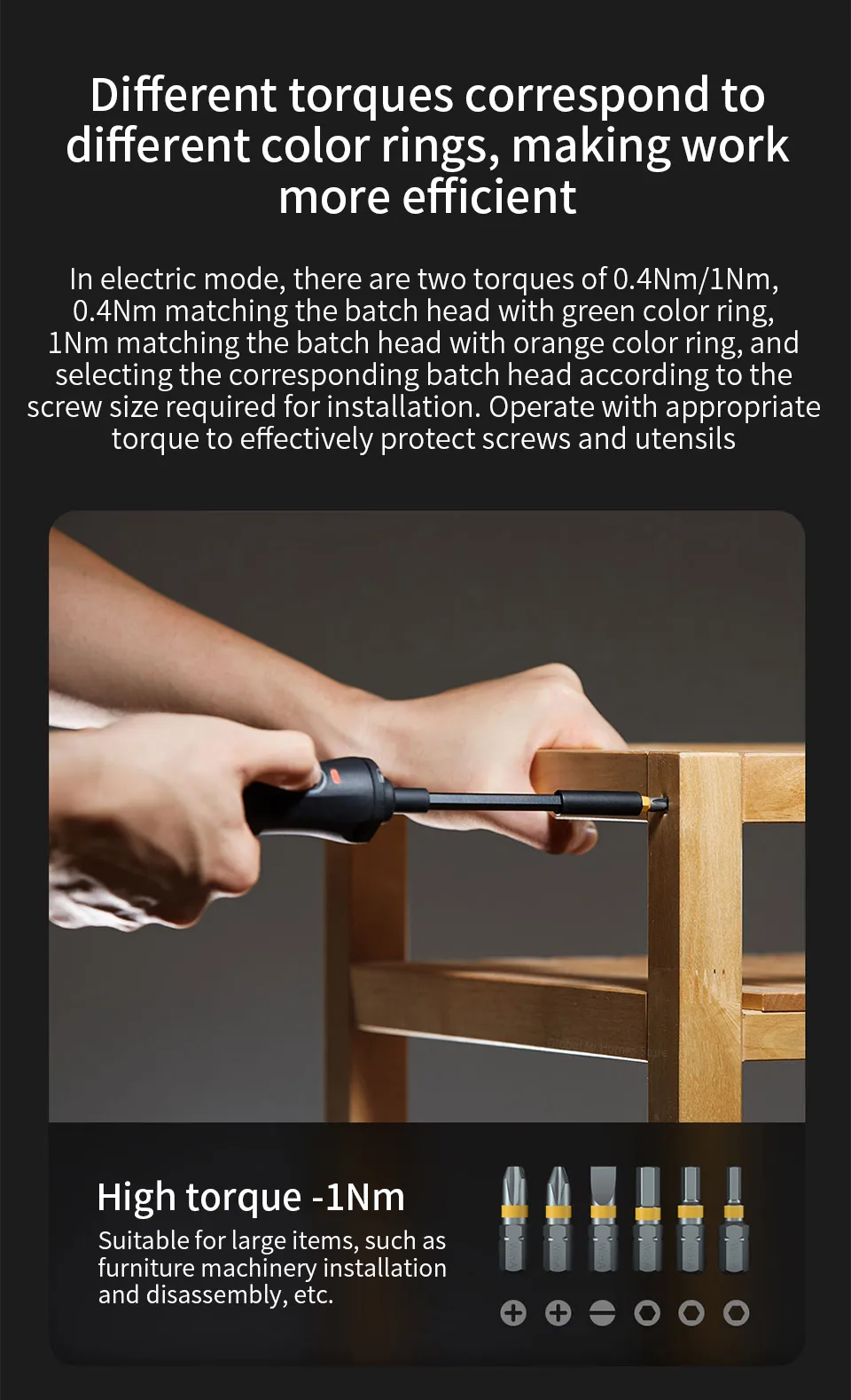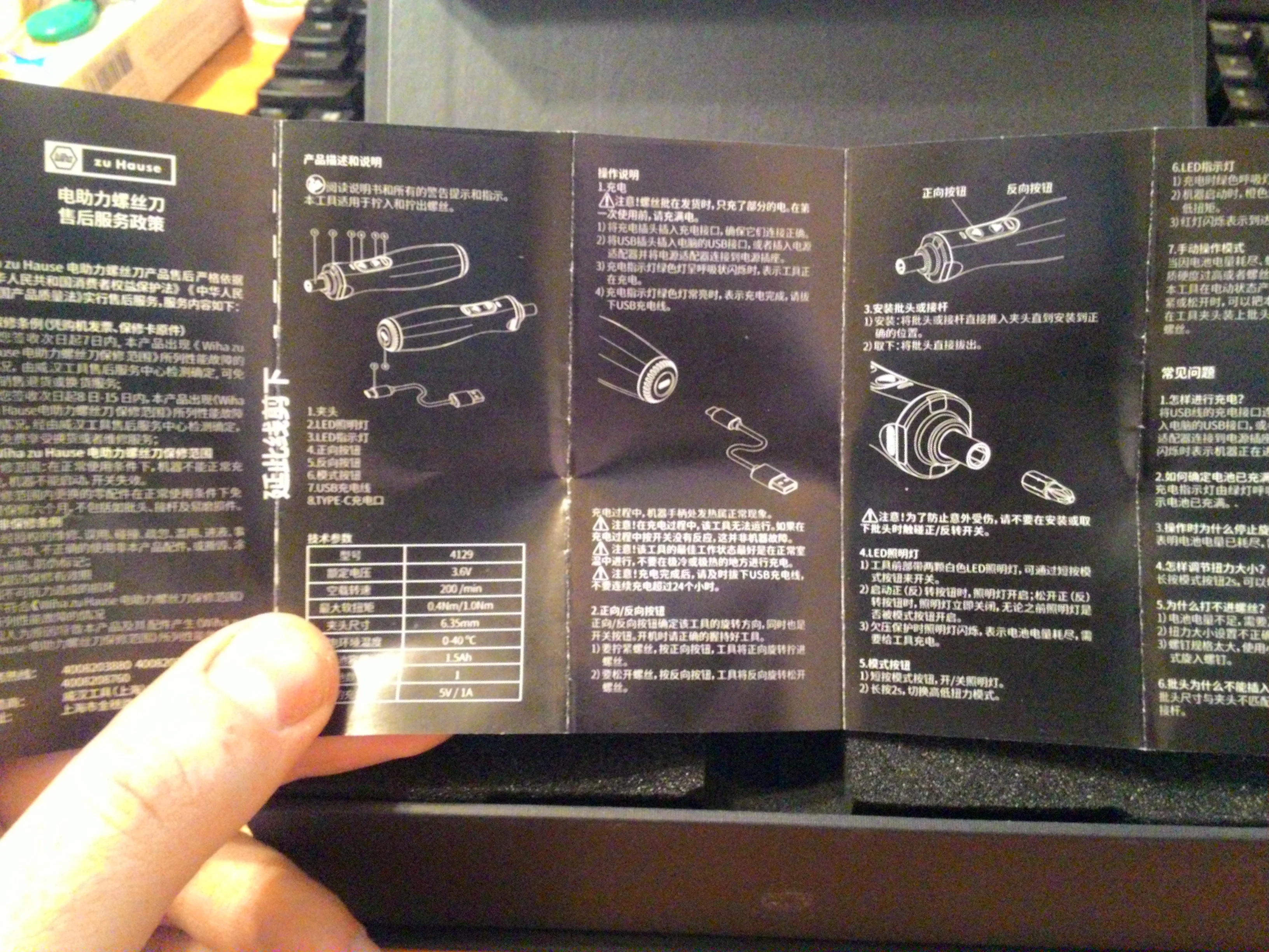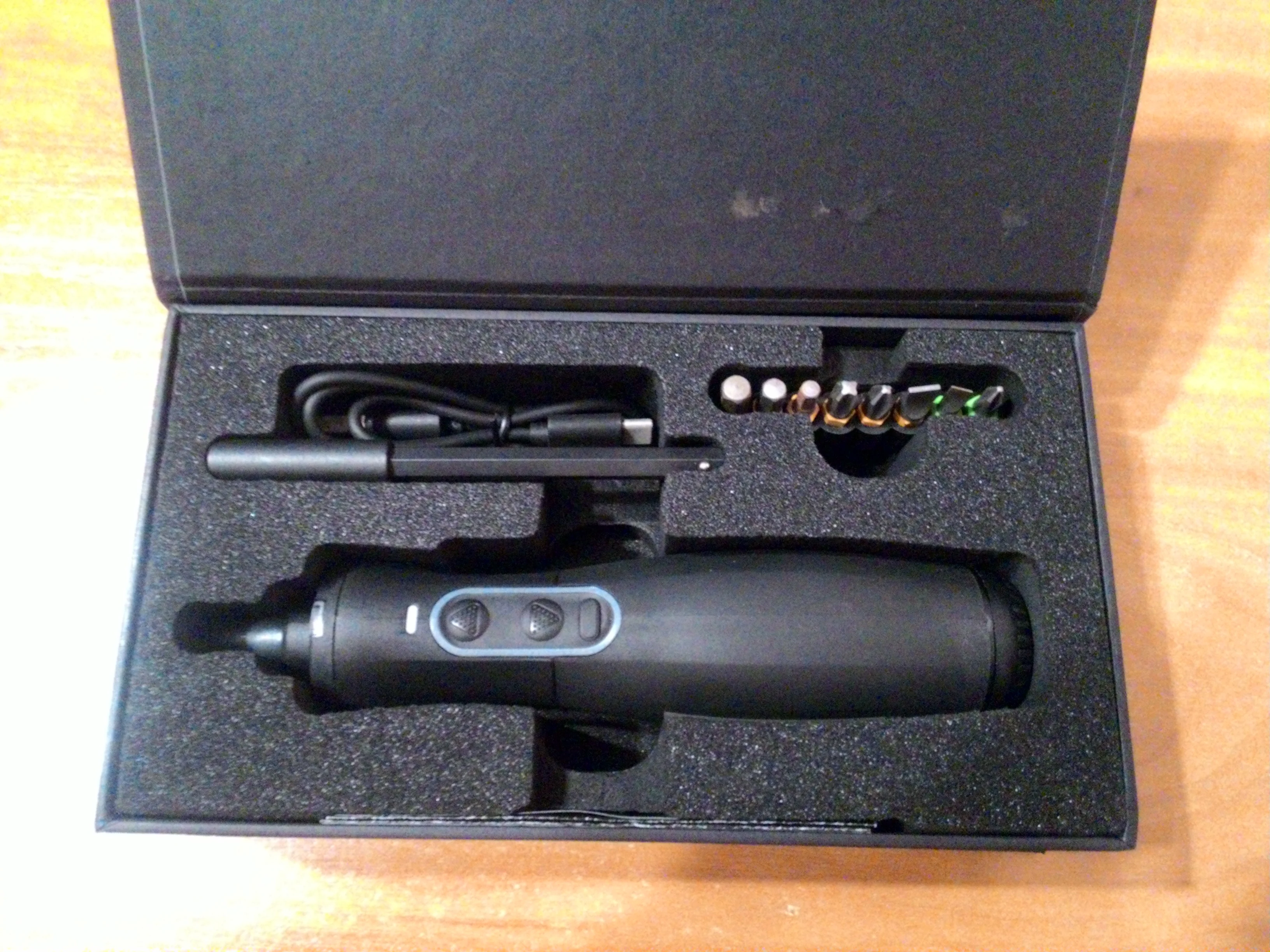 Товаром доволен. Качественная упаковка, все чинно\благородно, крепкая черная картонная упаковка, с вспененным формованным материалом внутри четко для вещей внутри, магнитный замочек в крышке. Отвертка приятно лежит в руке, увесиста, проста в управлении, закрепленный шток для сворачивания винтов и двигатель с управлением в обе стороны для собственно откручивания, подсветка рабочей зоны с двух сторон, включение подсветки отдельной кнопкой, зарядка через кабель USB Type-C? вращение штока происходит без биений и очень точно, качество заметно.