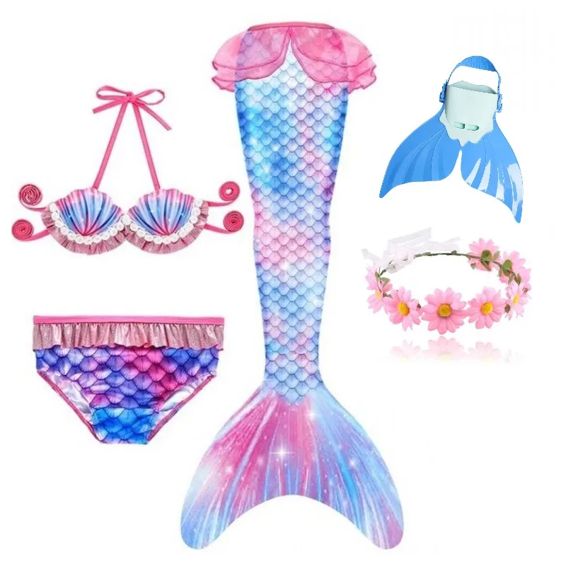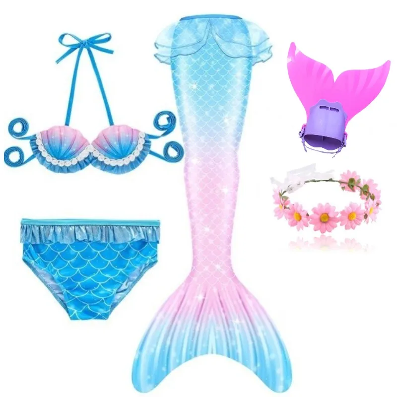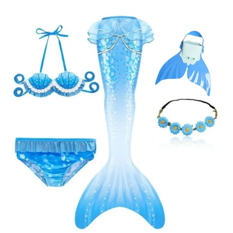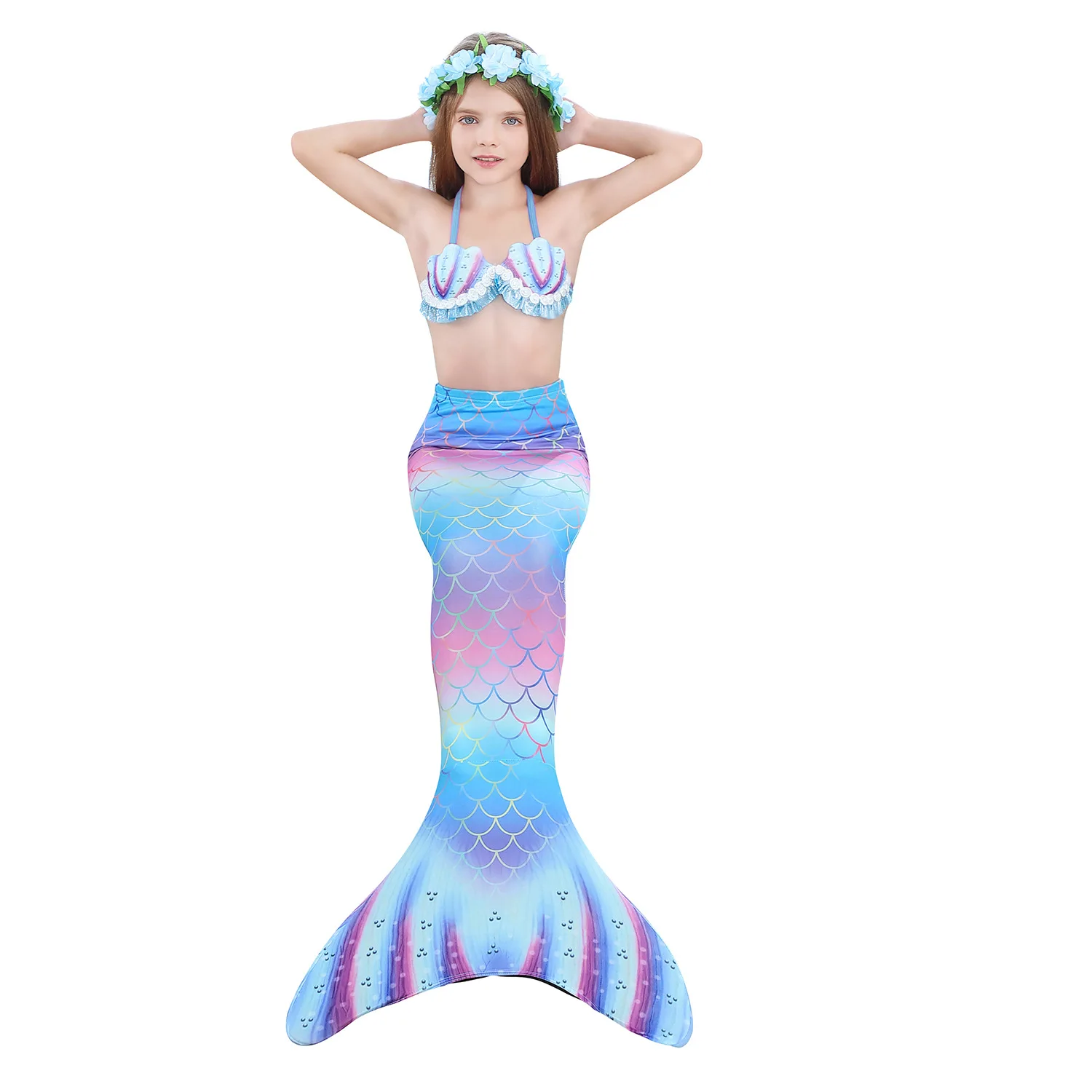 Купальный костюм для девочек с хвостом русалки, комплект для плавания с моноластами, Очками И венком