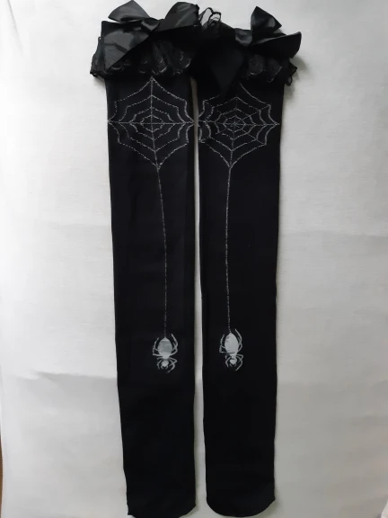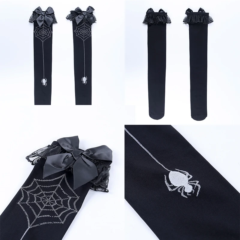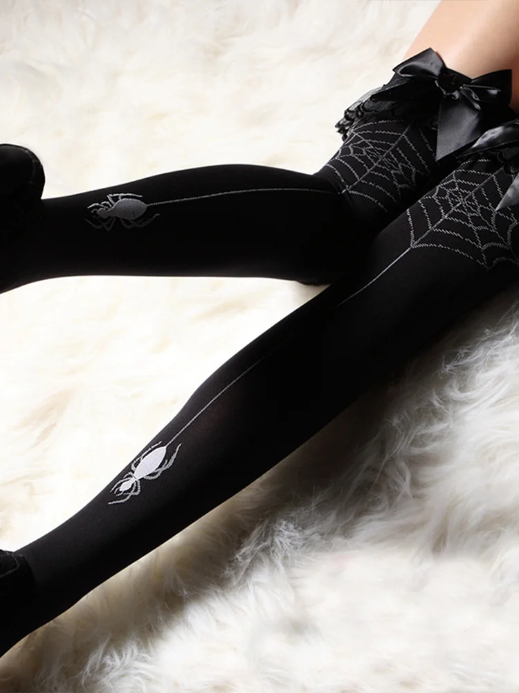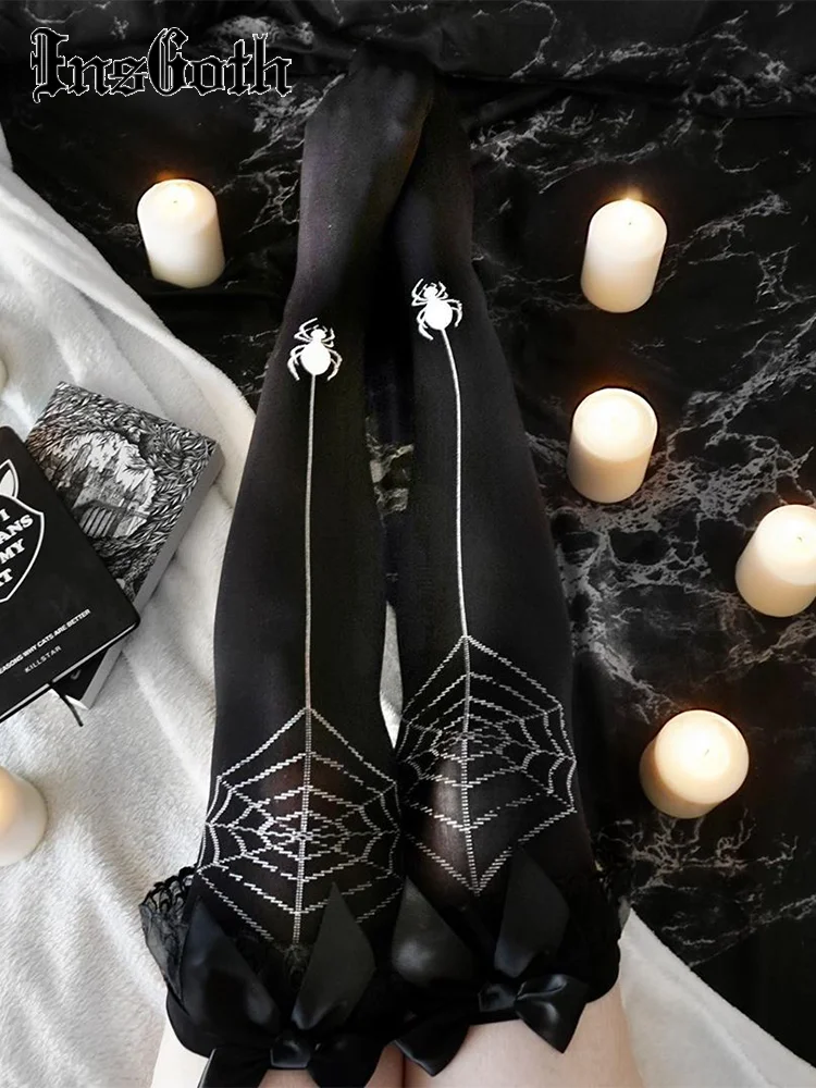 Черные женские чулки InsGoth в готическом стиле с принтом паука, бандажные элегантные сетчатые чулки в стиле хип-хоп с бантом, чулки для косплея в стиле "Лолита" на выпускной