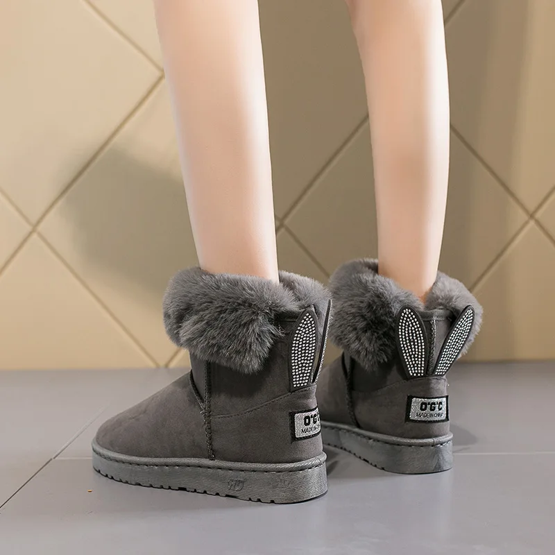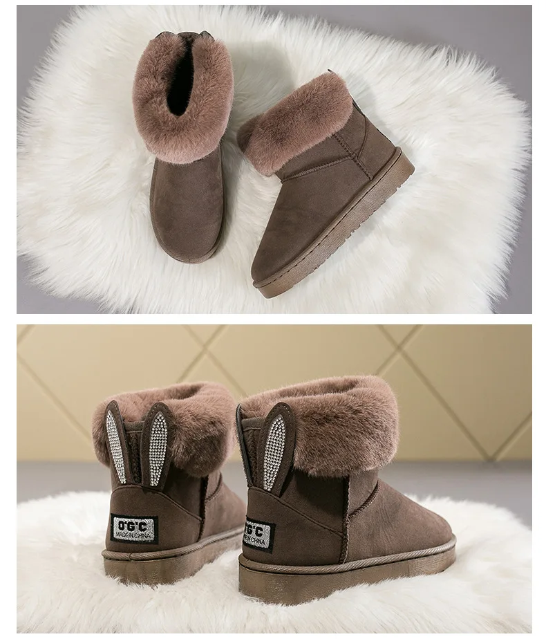 Женские ботинки с кроличьими ушками, теплые плюшевые ботинки на плоской подошве, Размеры 35-41, для зимы, 2022