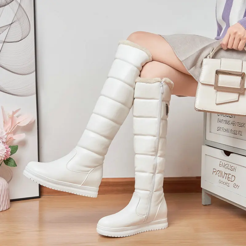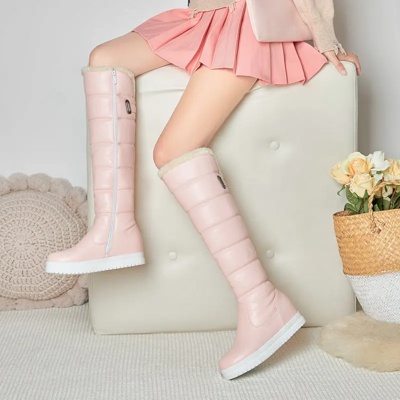 Женские плюшевые сапоги до колена, черные, белые, розовые удобные сапоги на плоской подошве, большой размер 41, 42, 43, для зимы, 2021