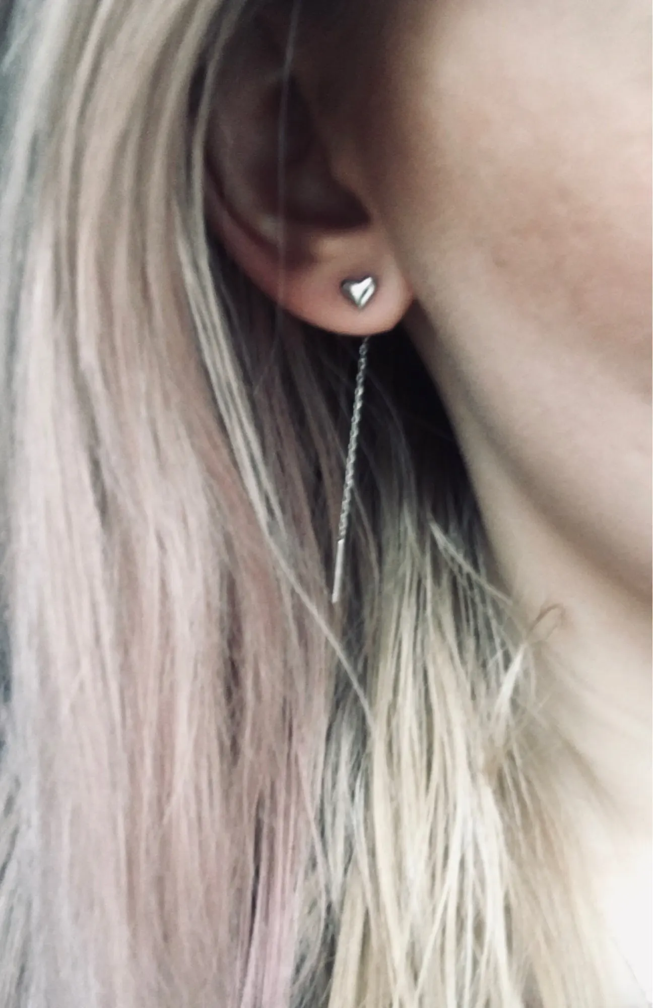 Серьги-гвоздики женские из серебра 925 пробы, 4,5 см, с сердечком