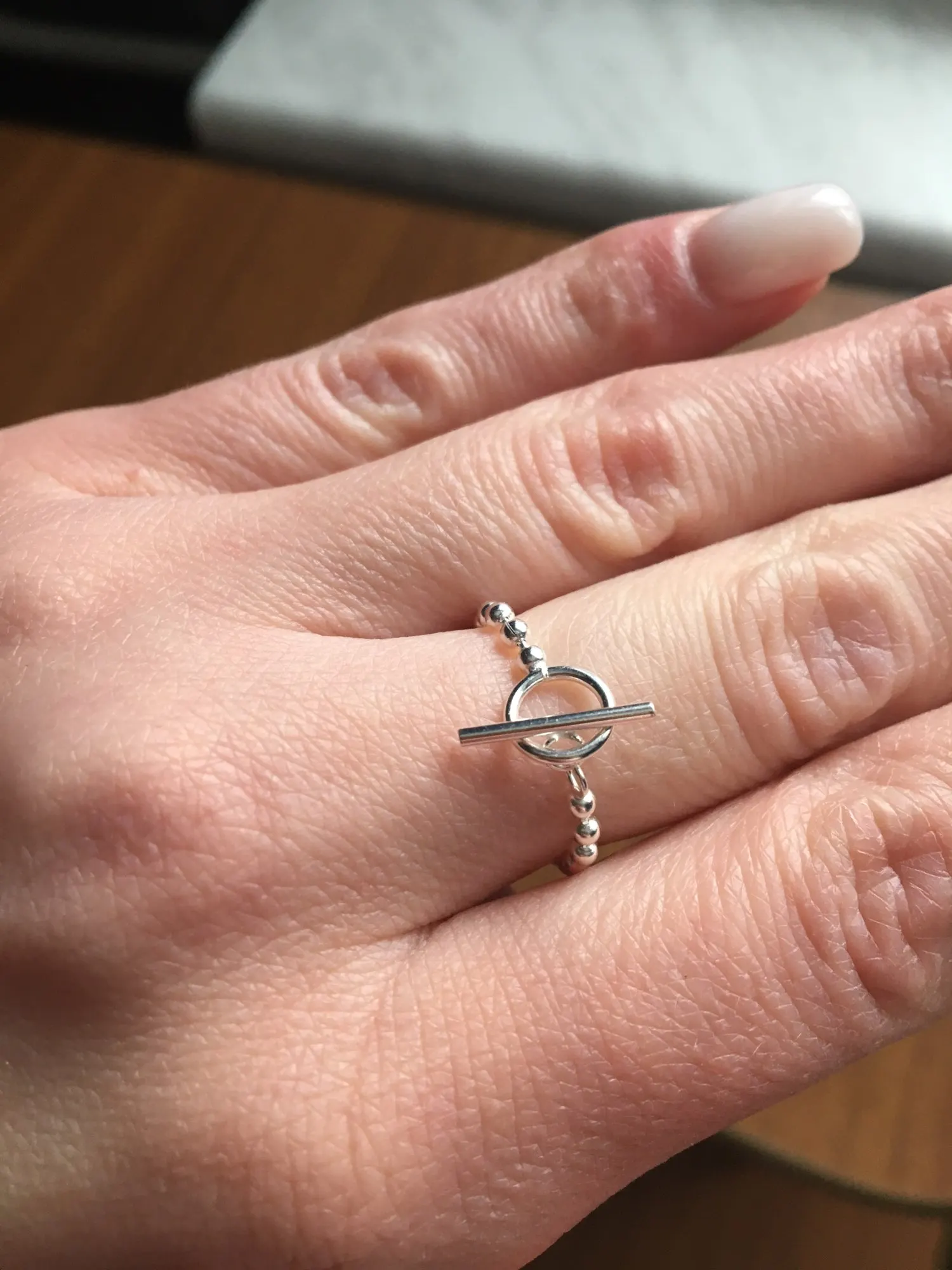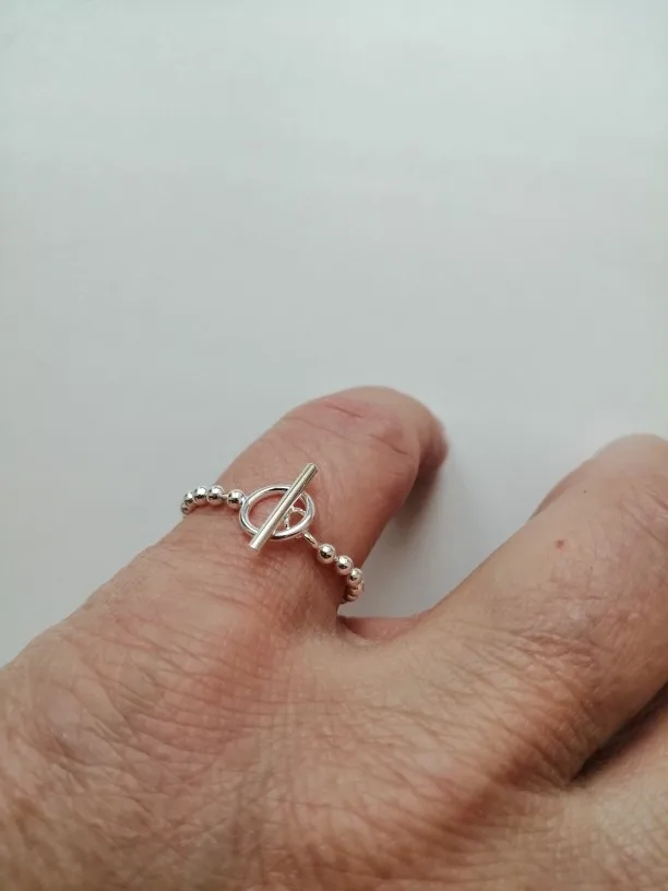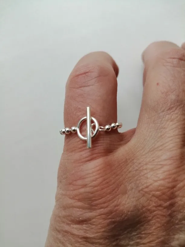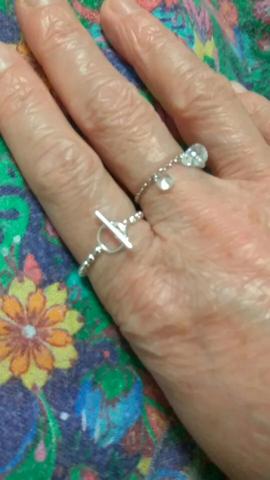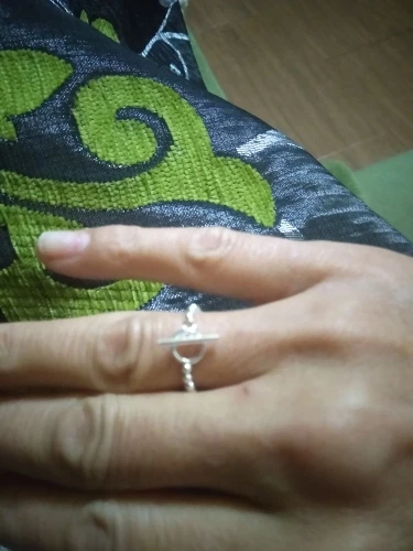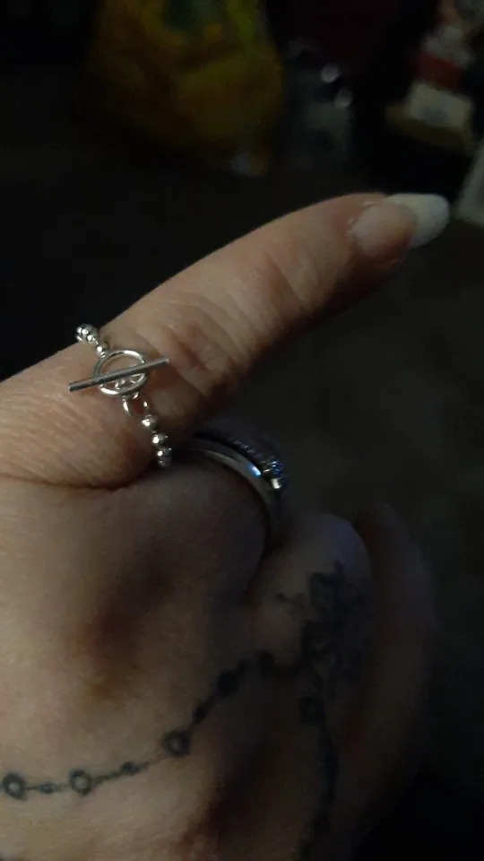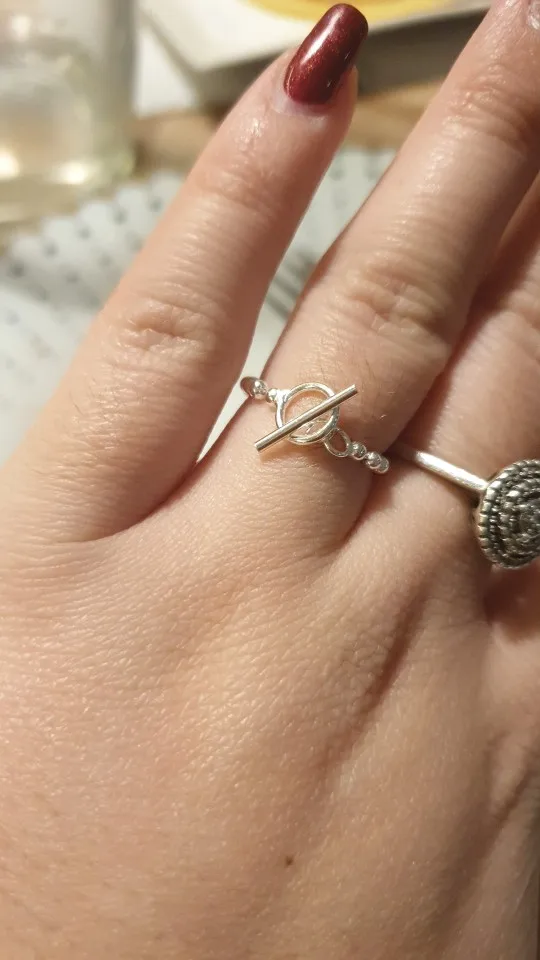 Очень красивое кольцо и хорошее качество Быстрая доставка Размер 7, но также подходит для размера 8. Просто откройте застежку, чтобы положить кольцо.