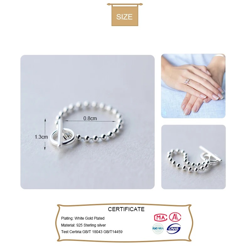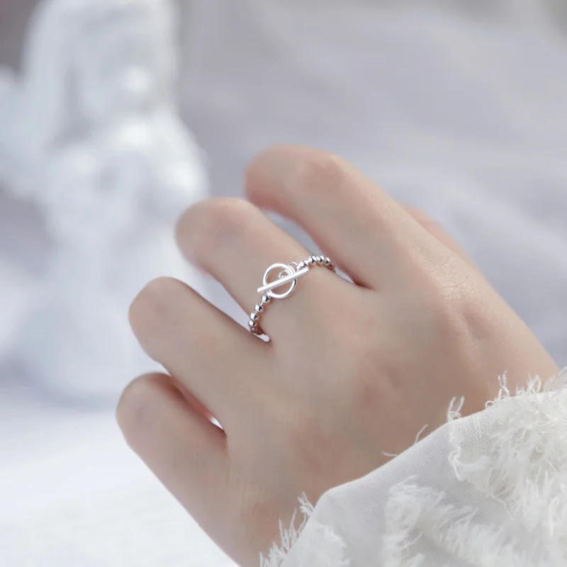 Кольцо женское из серебра 100% пробы, с круглыми бусинами, Размер 7, DS2189