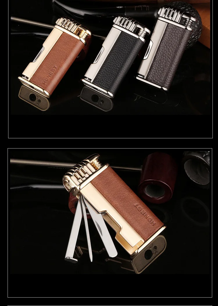 Многофункциональфонарь зажигалка, Бутановая газовая турбо-зажигалка с подарочной коробкой, аксессуары для сигарет и сигар