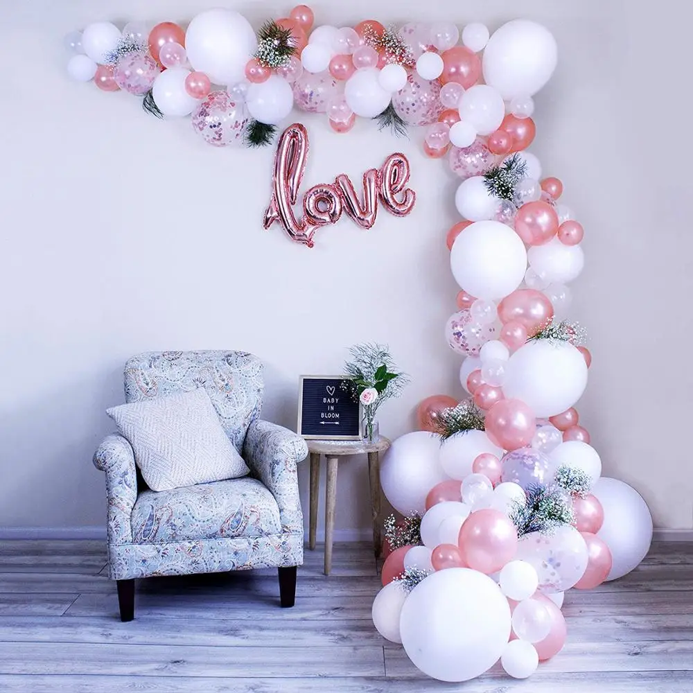 Воздушные шары, комплект гирлянды, розовое золото, конфетти, белые,...