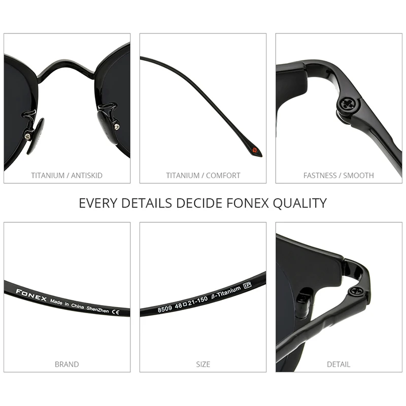 FONEX Мужские и женские винтажные очки, солнцезащитные очки из тита...