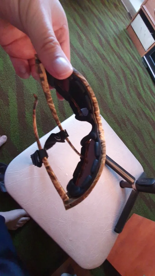 Всё так как на фото мне очень нравятся эти замечательные очки сидят на лице хорошо мне как раз то что надо, сегодня уронил вместе с рюкзак ом с кресла с 1.5 метров- не разбились, одна только одна царапина ( рюкзак лёг на них при этом), значит вполне крепкие, резинка на липучке, что тоже удобно, удобнее пользоваться чтобы снимать / одевать) классные очки спасибо и уважение продавцу