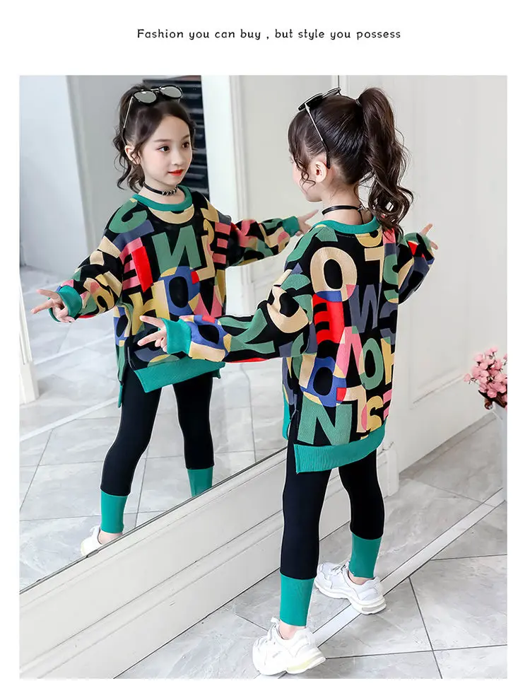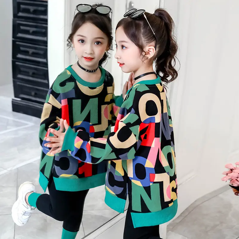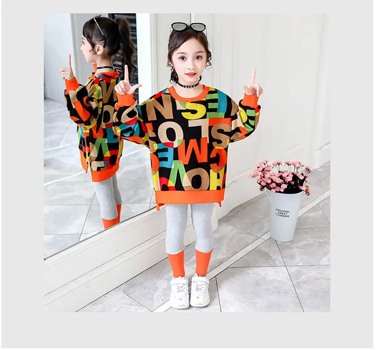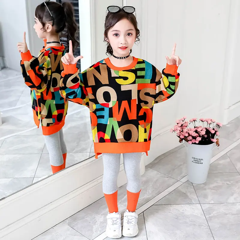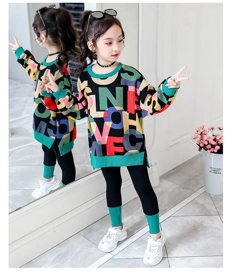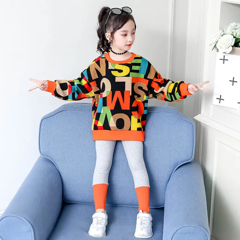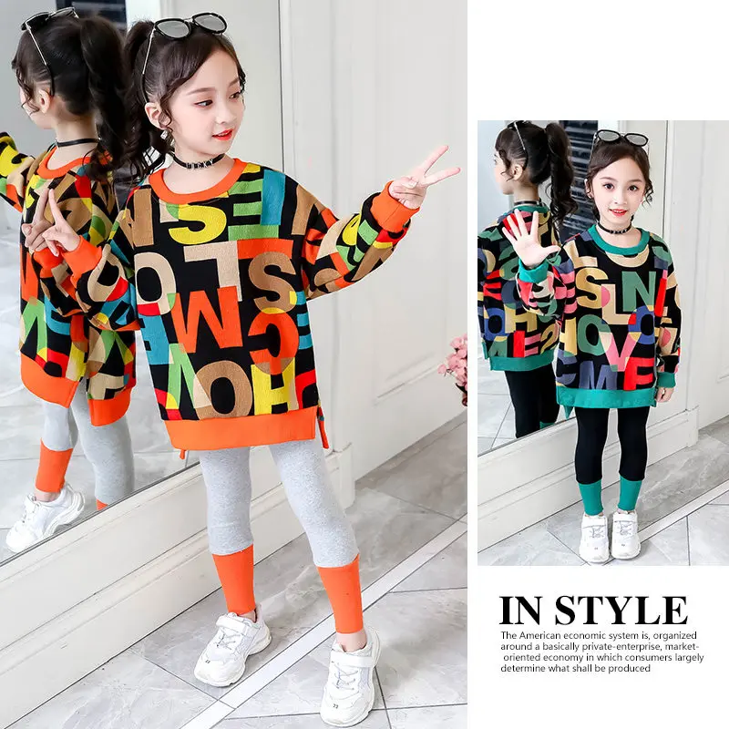 Костюм спортивный детский осенне-весенний из топа с буквенным принтом + леггинсов