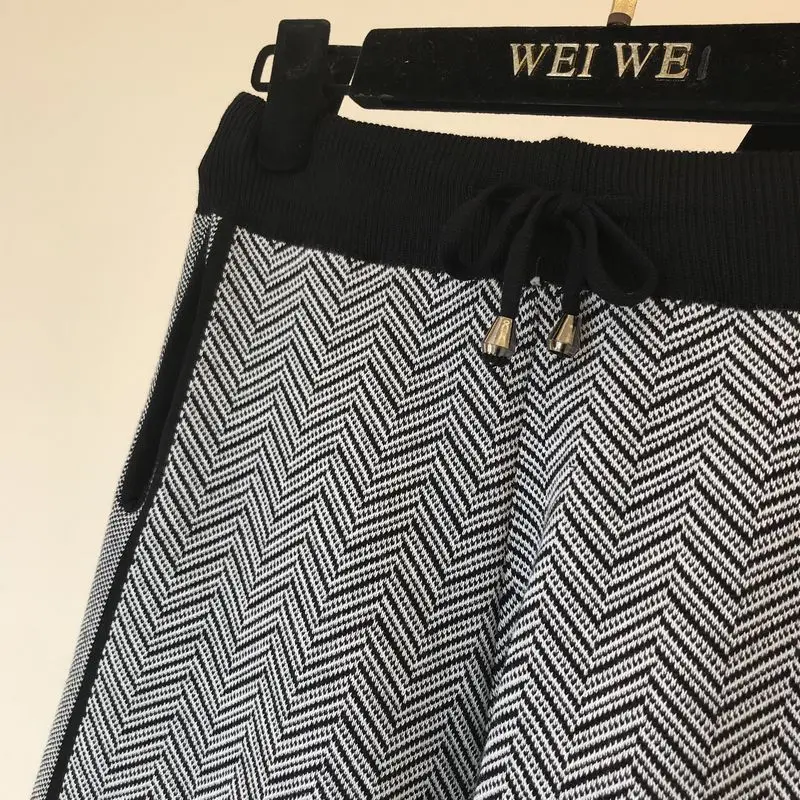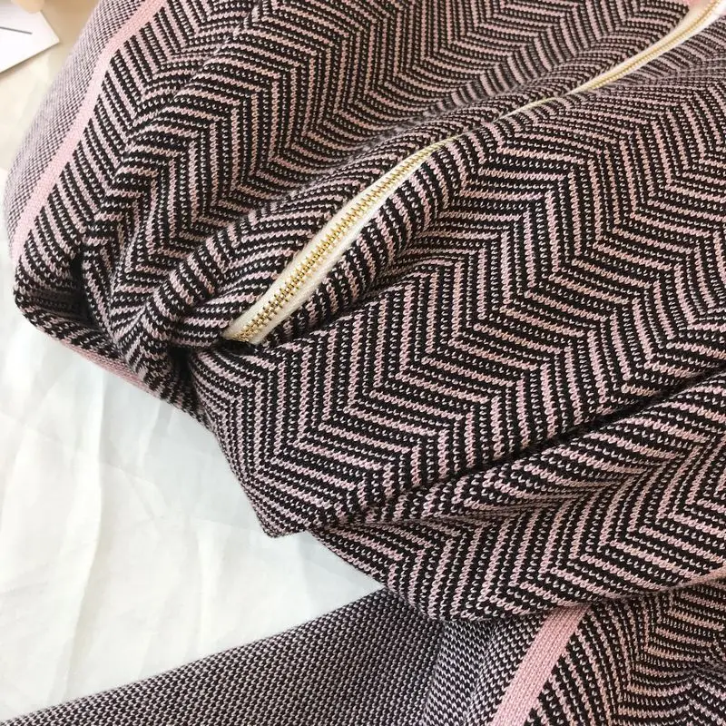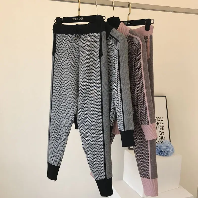 Осенне-зимний трикотажный спортивный костюм с воротником-стойкой, куртка на молнии, свитер и брюки-карандаш, женская одежда, комплект из 2 предметов, вязаный брючный костюм