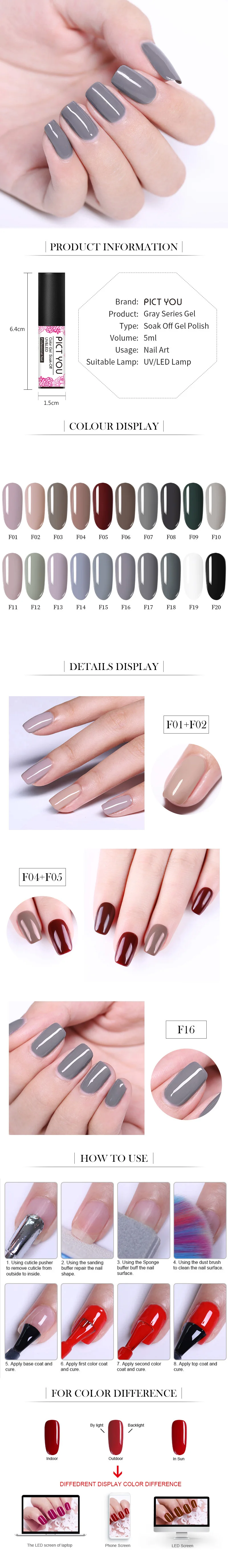 Гель-лак для ногтей PICT YOU, серое осеннее покрытие, 5 мл, 20 цветов, УФ-Гель-лак, Полупостоянный дизайн ногтей