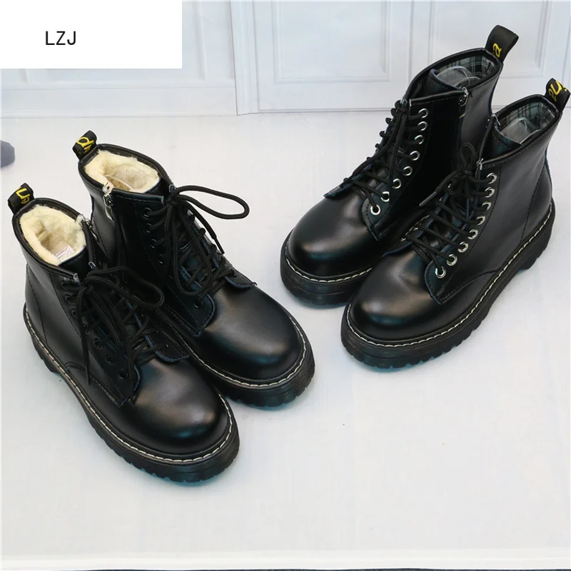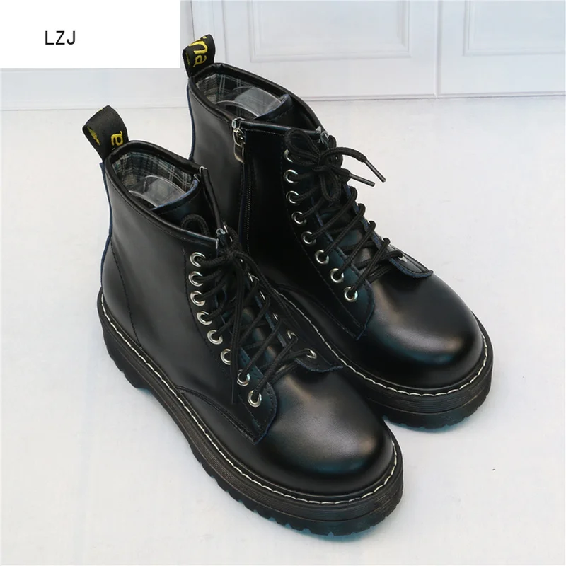 Женские теплые ботинки из нубука на плоской платформе Ботильоны весенние сапоги черного цвета, на шнуровке, черного цвета средней длины; Обувь на толстой резине; Модные вечерние обувь; Zapatos De Mujer; Большие размеры