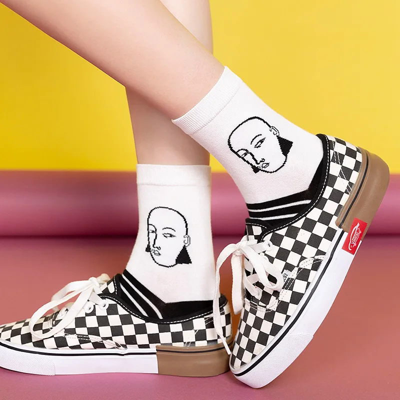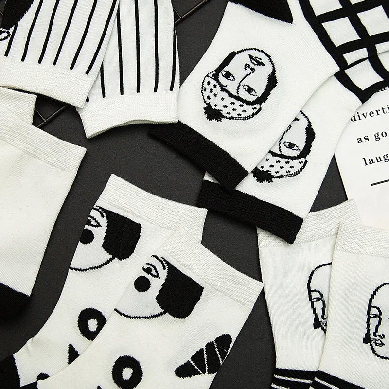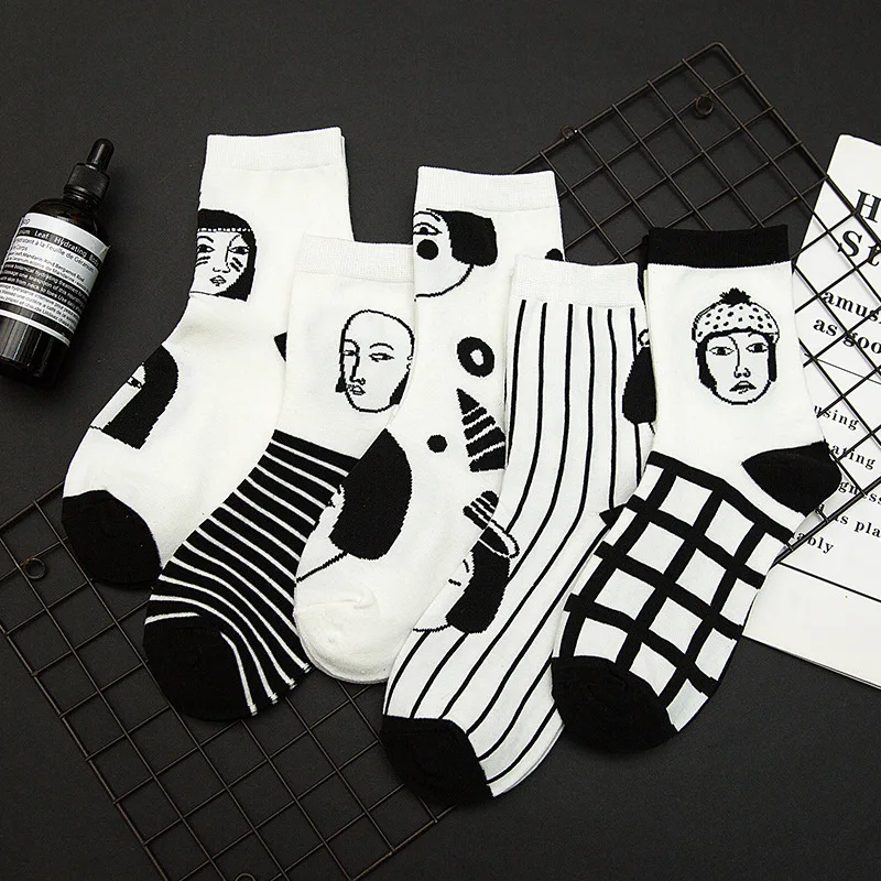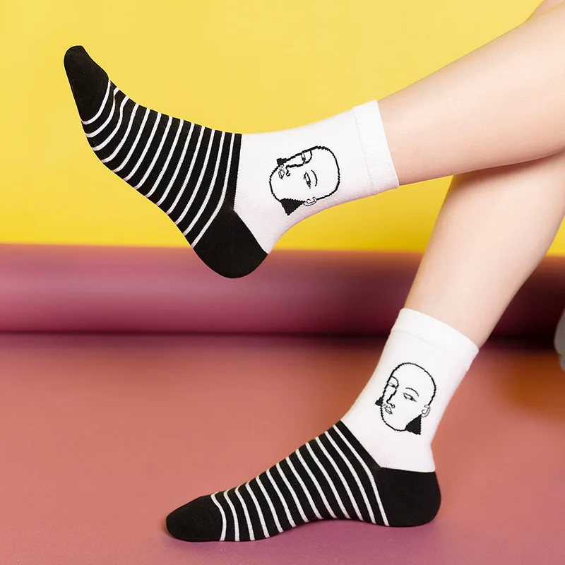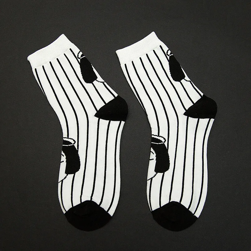 Осенне-зимние женские носки в полоску с героями мультфильмов хлопковые черно-белые корейские забавные носки для дам 417
