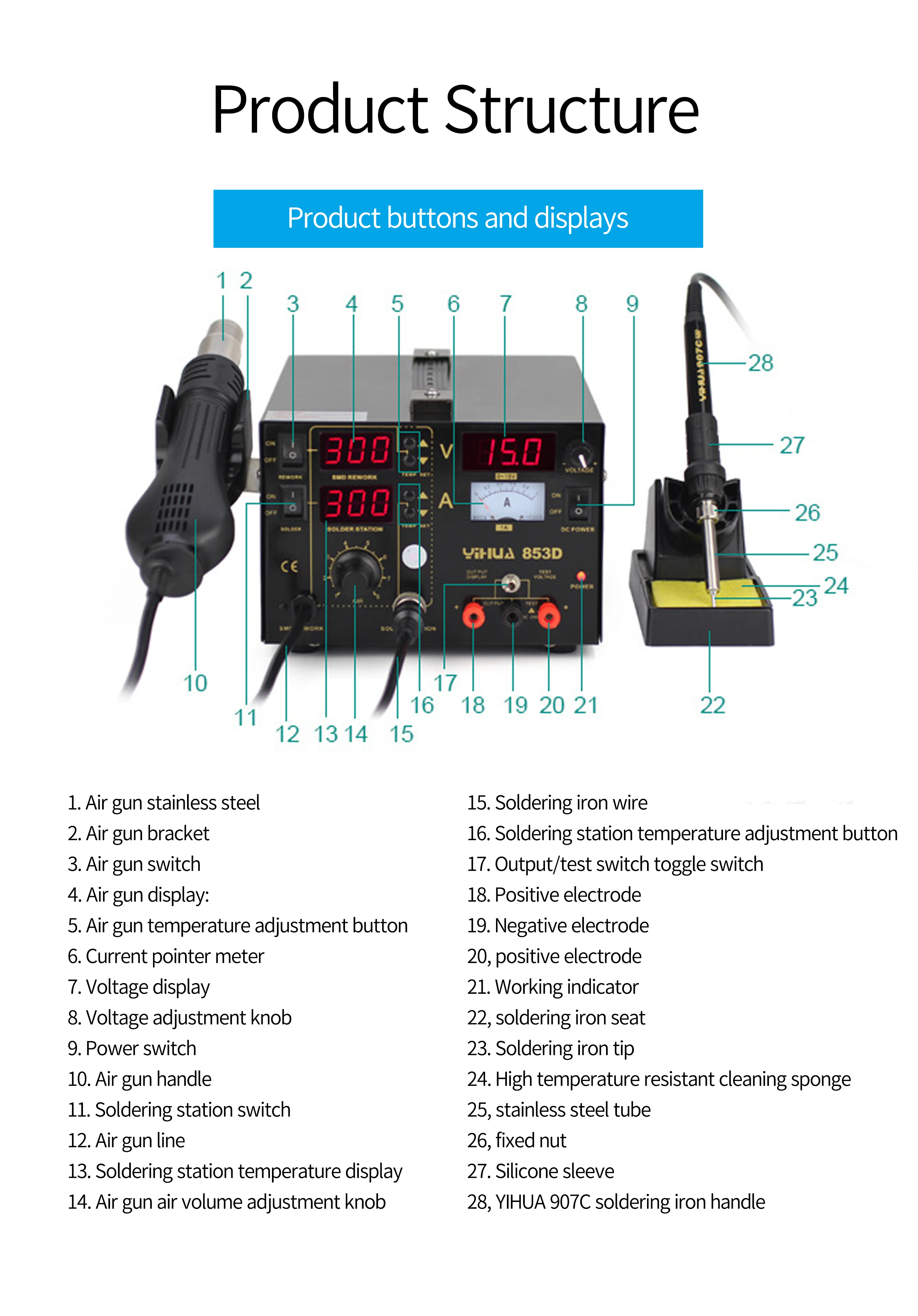 220 В/110 В штепсельная вилка EU/US 3 в 1, паяльная станция YIHUA 853D, паяльная станция, источник питания, пайка