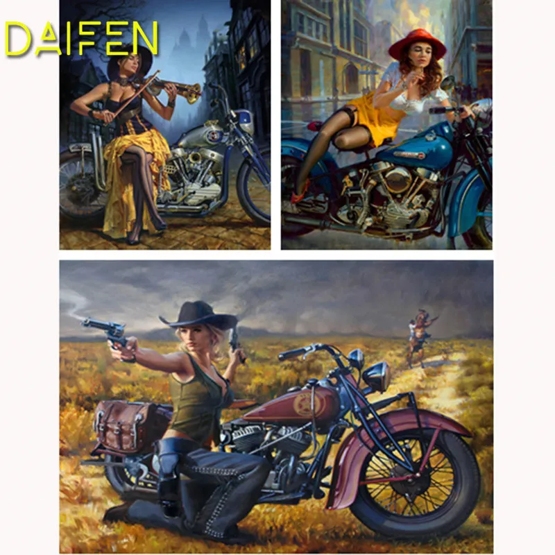 Полная круглая Алмазная вышивка, полная квадратная Алмазная мозаика, мотоцикл, девушка, ковбойская скрипка, поезд, 5DIY алмазная живопись, вышивка крестиком