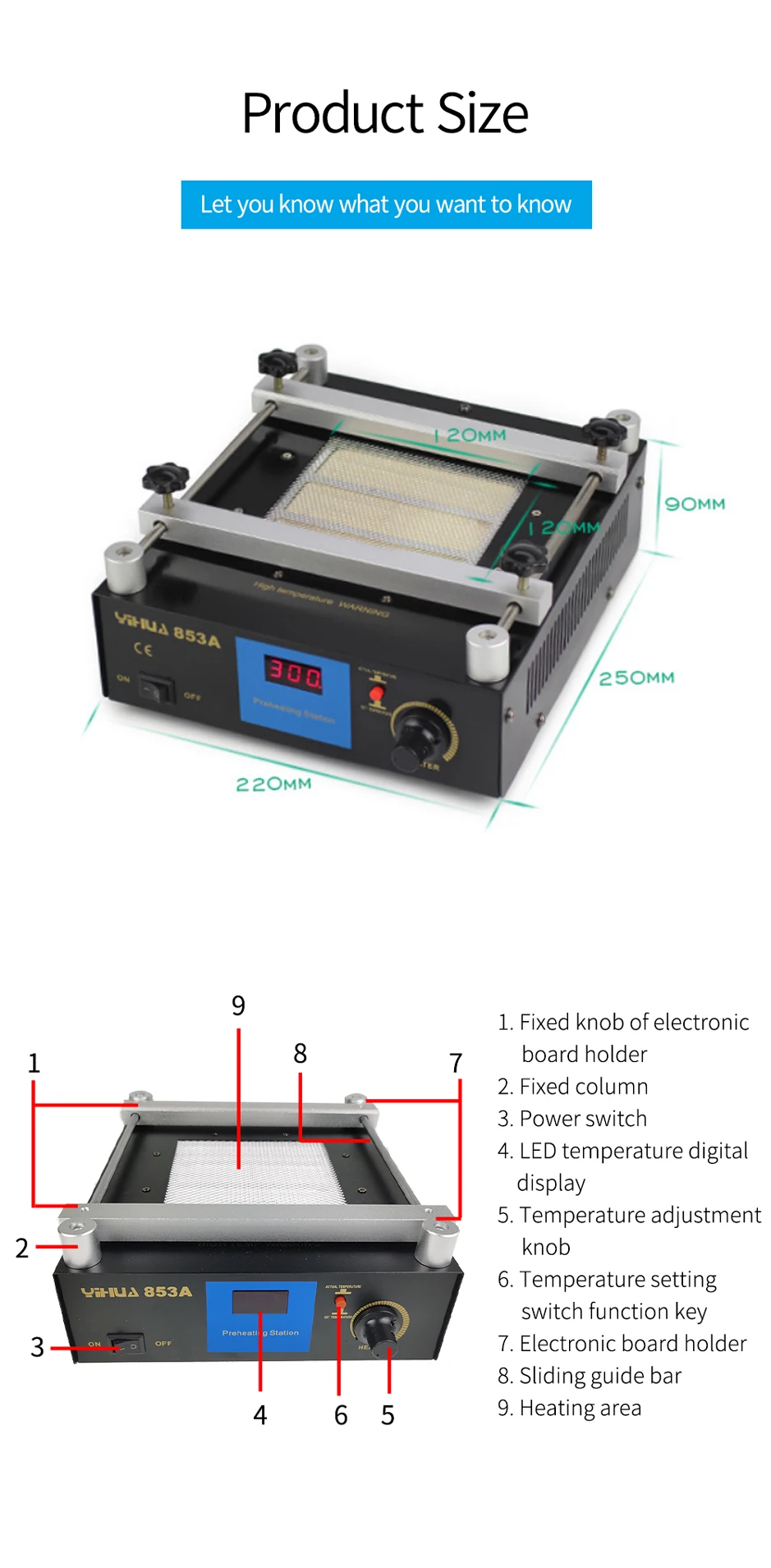 YIHUA 853A Бессвинцовая паяльная станция предварительного нагрева материнская плата станции BGA для ремонта SMT