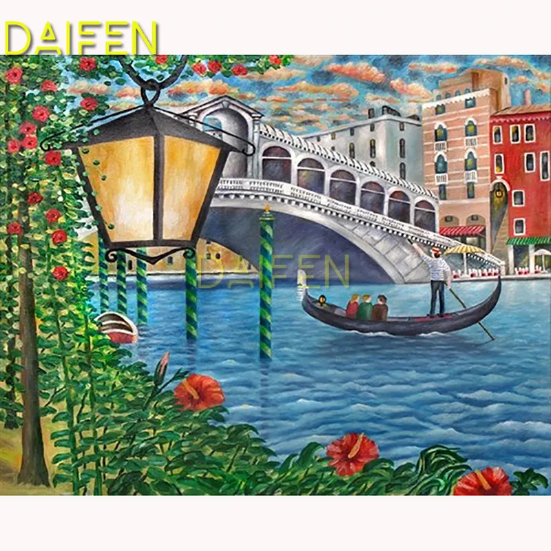 Алмазная вышивка с квадратными стразами Венецианская лодка мост Цветок светильник лая полная круглая Алмазная мозаика 5D сделай сам алмазная живопись вышивка крестиком