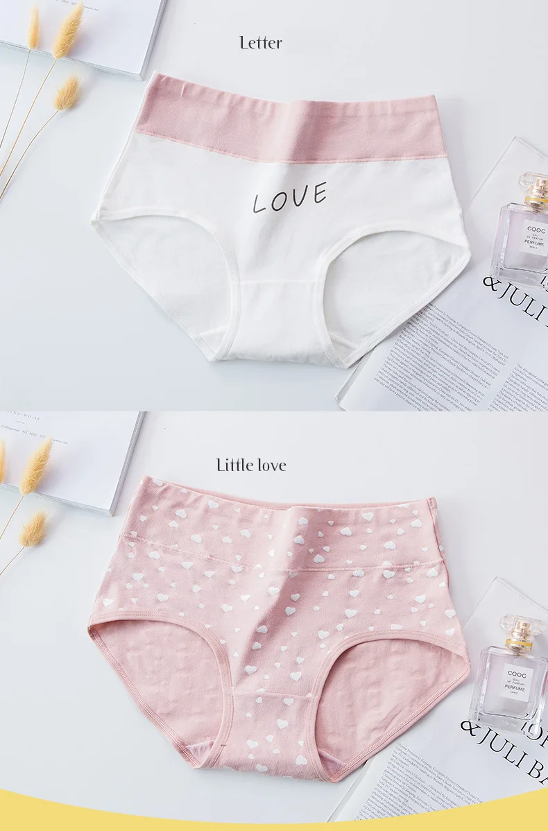 Женские хлопковые трусики ZJX 4 шт.лот, нижнее белье с завышенной талией для похудения, бесшовные трусы с милым принтом, сексуальные дышащие трусики для девушек