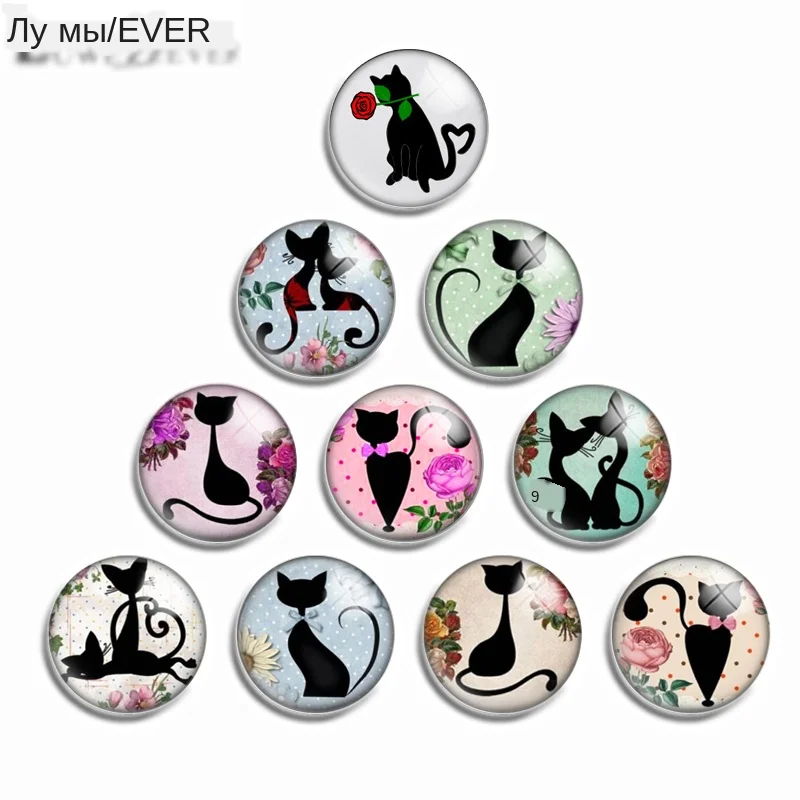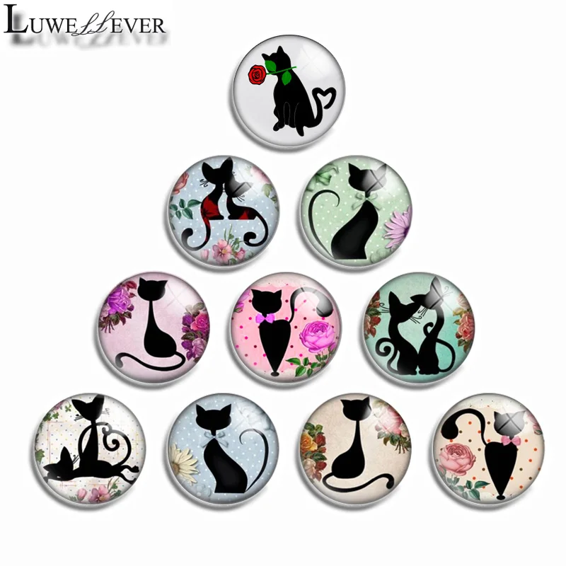 Браслет с подвесками в виде черных кошек, круглые, размером 12 мм, 10 мм, 14 мм, 16 мм, 20 мм, 25 мм, 488, бижутерия со стеклянными кабошонами