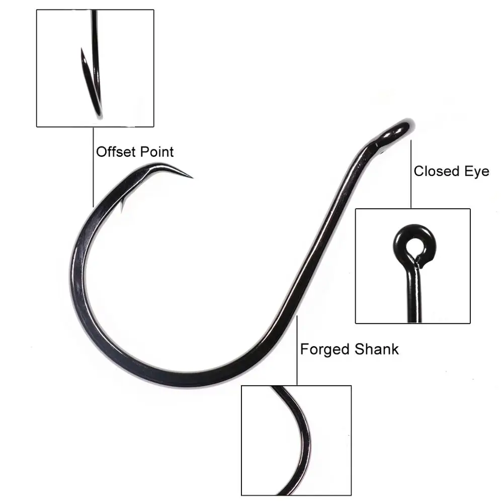 Спецификация: Крючок из высокоуглеродистой стали Крючок с петлей Размер: #1 ~ 9/0(10 размеров s) Цвет: черный никель Особенности: Обработанный и закрытый глаз, сверхпрочная проволока, точки, как ножи, кованая сталь. Круглые Крючки-самый популярный крючок для сома, наиболее широко используемый и популярный крючок для ловли сома, особенно среди твердых сомов. Содержание упаковки: 5 шт./упак.