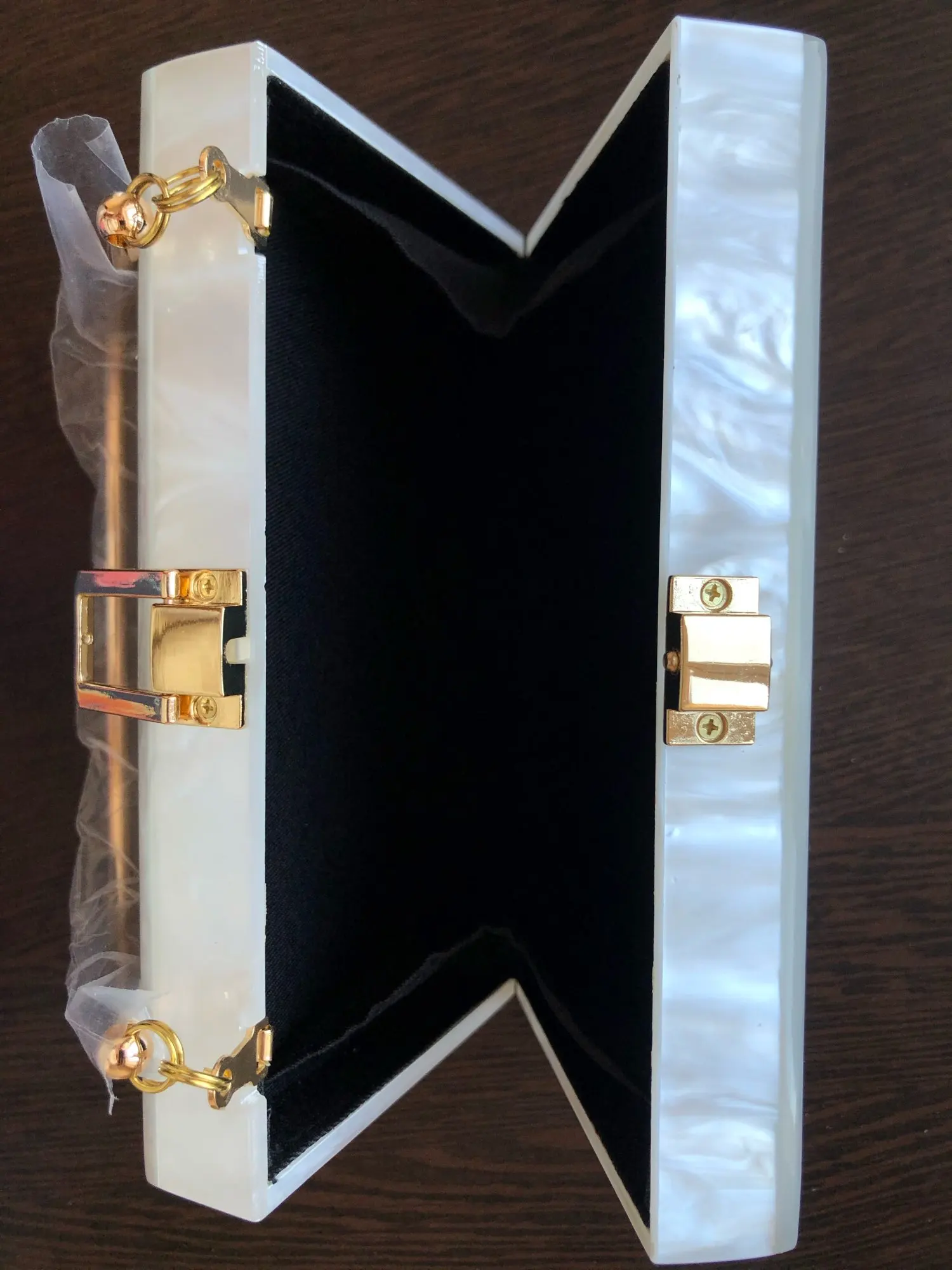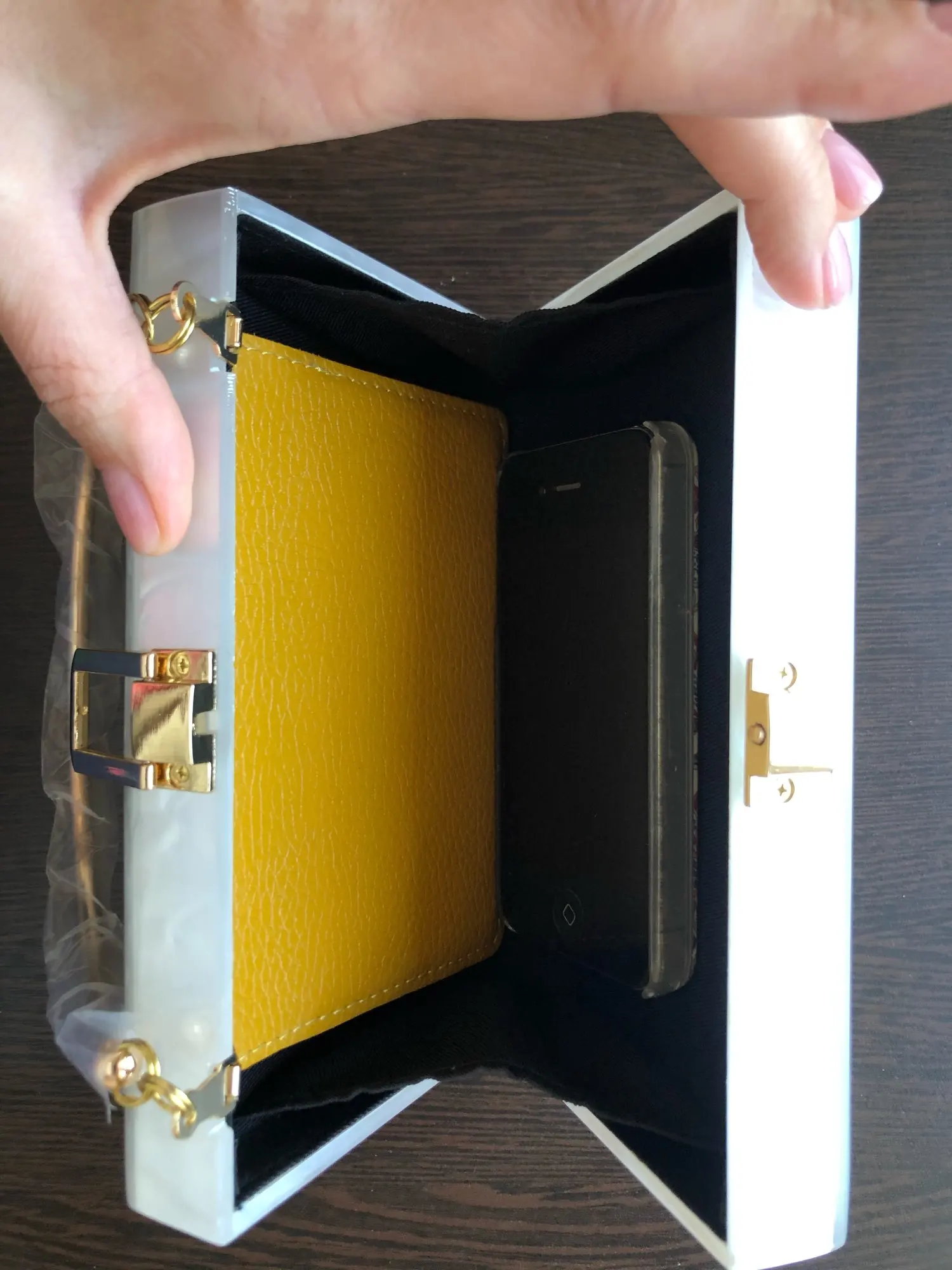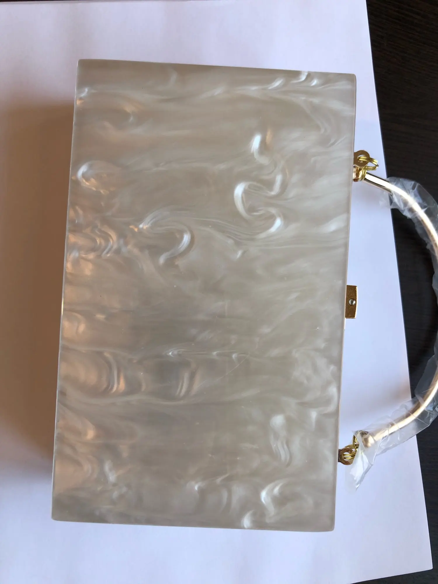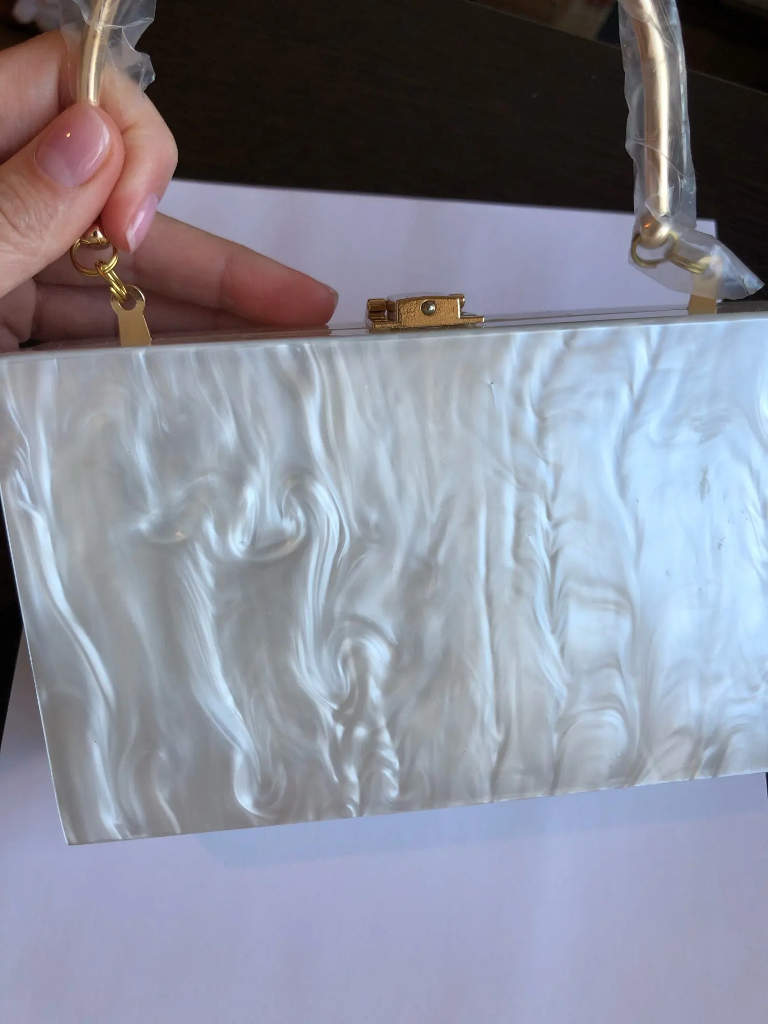 Пришла быстро в СПб. Купила на свадьбу к платью цвета Айвори. Маленькая, буквально два паспорта влезет и телефон, надеюсь ещё помада ))) цвет приятный. Сделала фото на белой бумаге чтобы был более понятен оттенок. На сколько надежная конструкция будет понятно после эксплуатации.