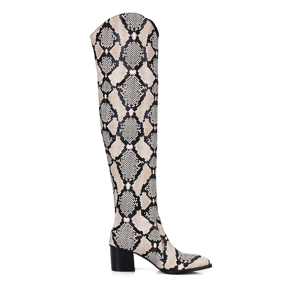 Брендовые женские сапоги до колена; Сапоги до бедра с принтом зебры...
