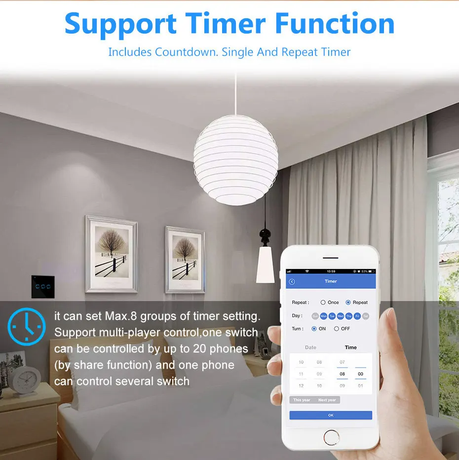 Умный светильник ключатель света eWeLink, стеклянная панель, сенсорный выключатель, совместимый с Alexa, Google Home