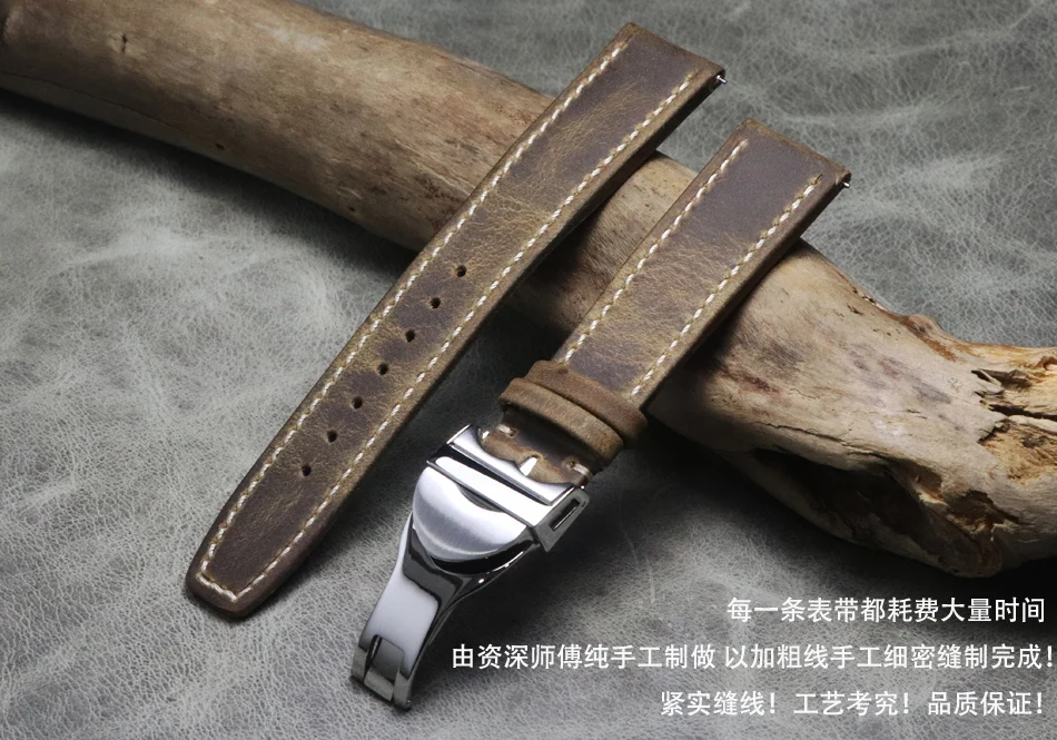 Ретро коричневый Бабочка Пряжка ручной работы ремешок 20 мм 21 мм 22 мм Мужские часы из натуральной кожи ремешок для ОмегаЗенитчасы IWC