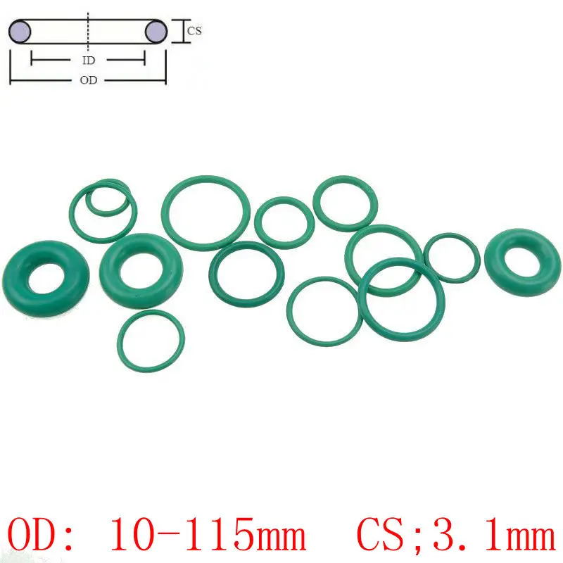 CS 3,1 мм OD 10-115 мм зеленый FKM Фтор масло уплотнительная прокладка резиновое уплотнительное кольцо