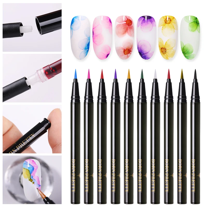Акварельная ручка для рисования ногтей, лак с цветущими чернилами, ...